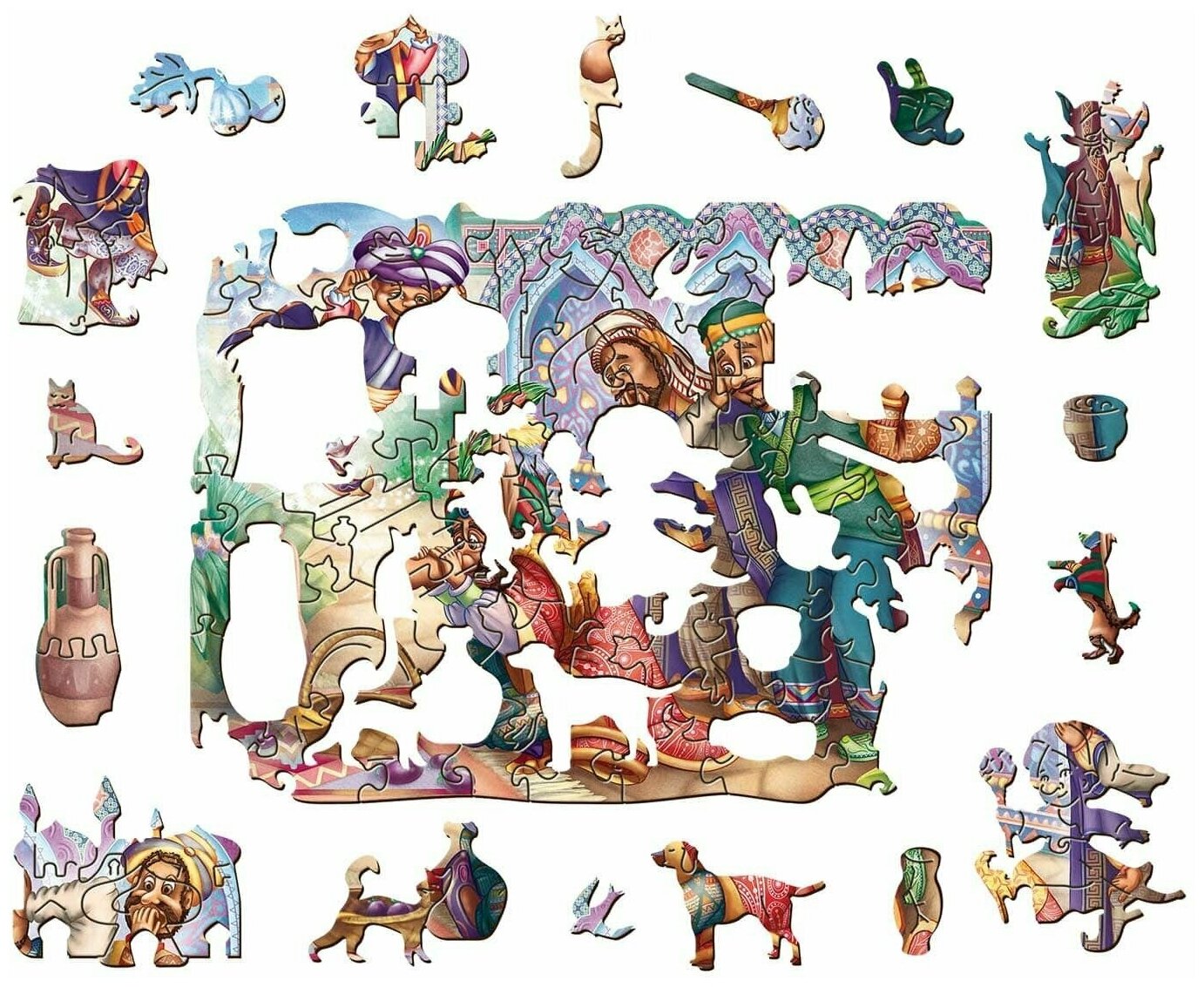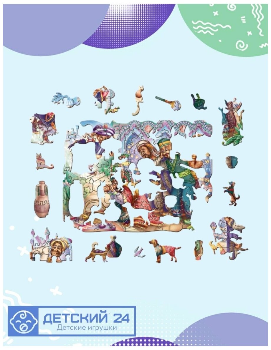 Деревянные пазлы, которые вы найдёте в коробке, совершенно нового формата, который отодвигает в сторону обыденность. Здесь можно найти как детали причудливой формы, так и фигуры элементов по мотивам изображения. Чтобы найти все загадки, которые мы спрятали в пазле, вам нужно скорее его собрать и тогда вы сами все увидите.