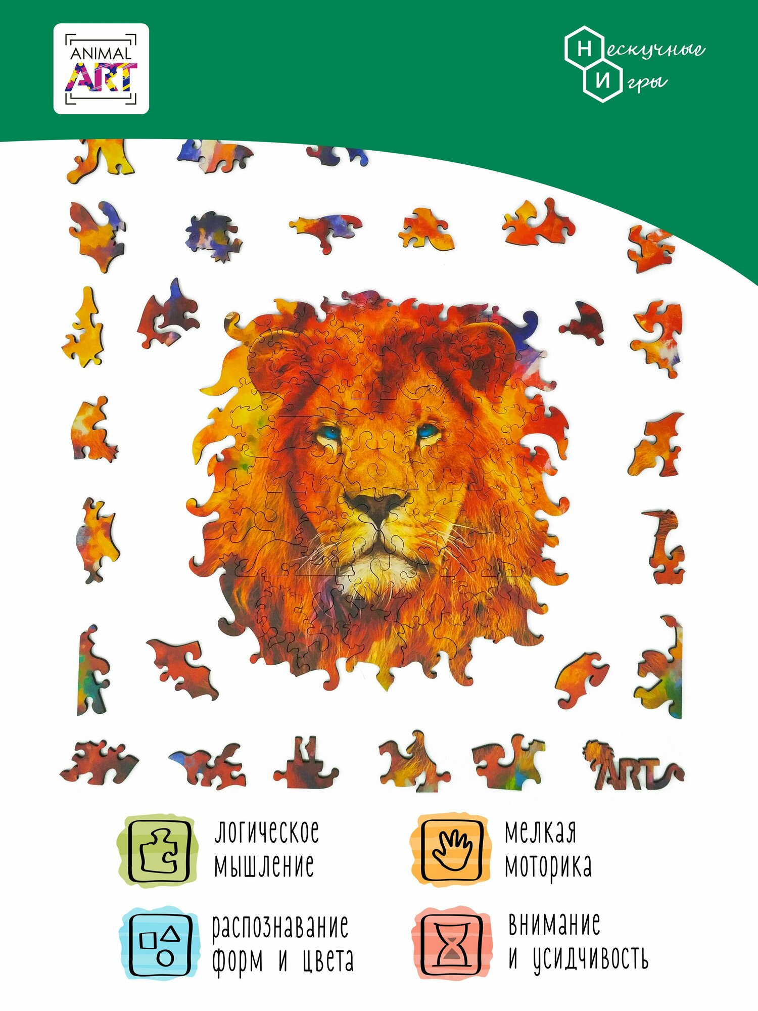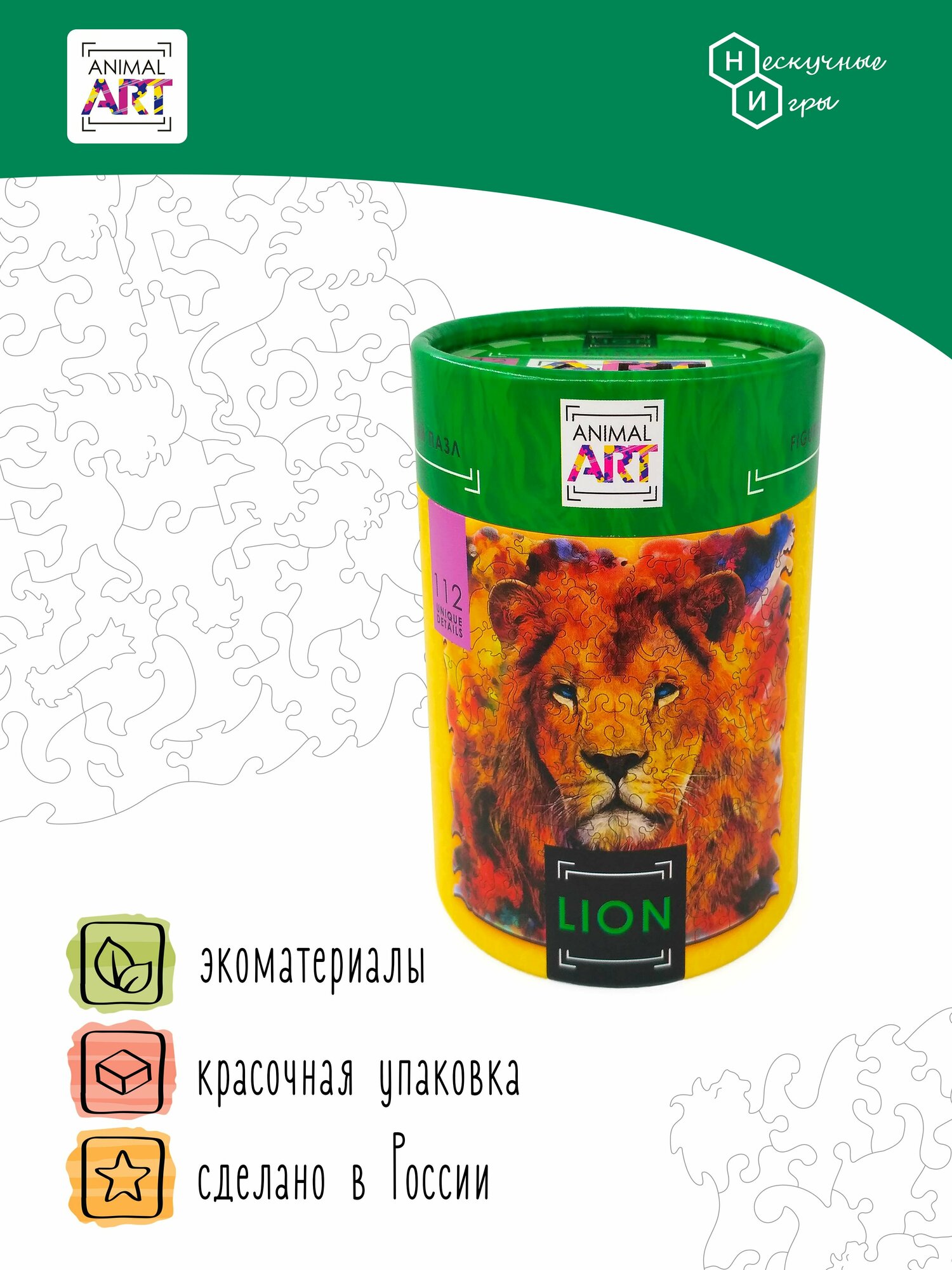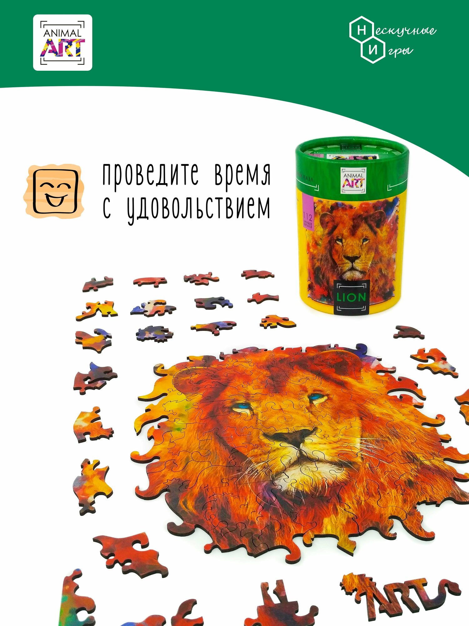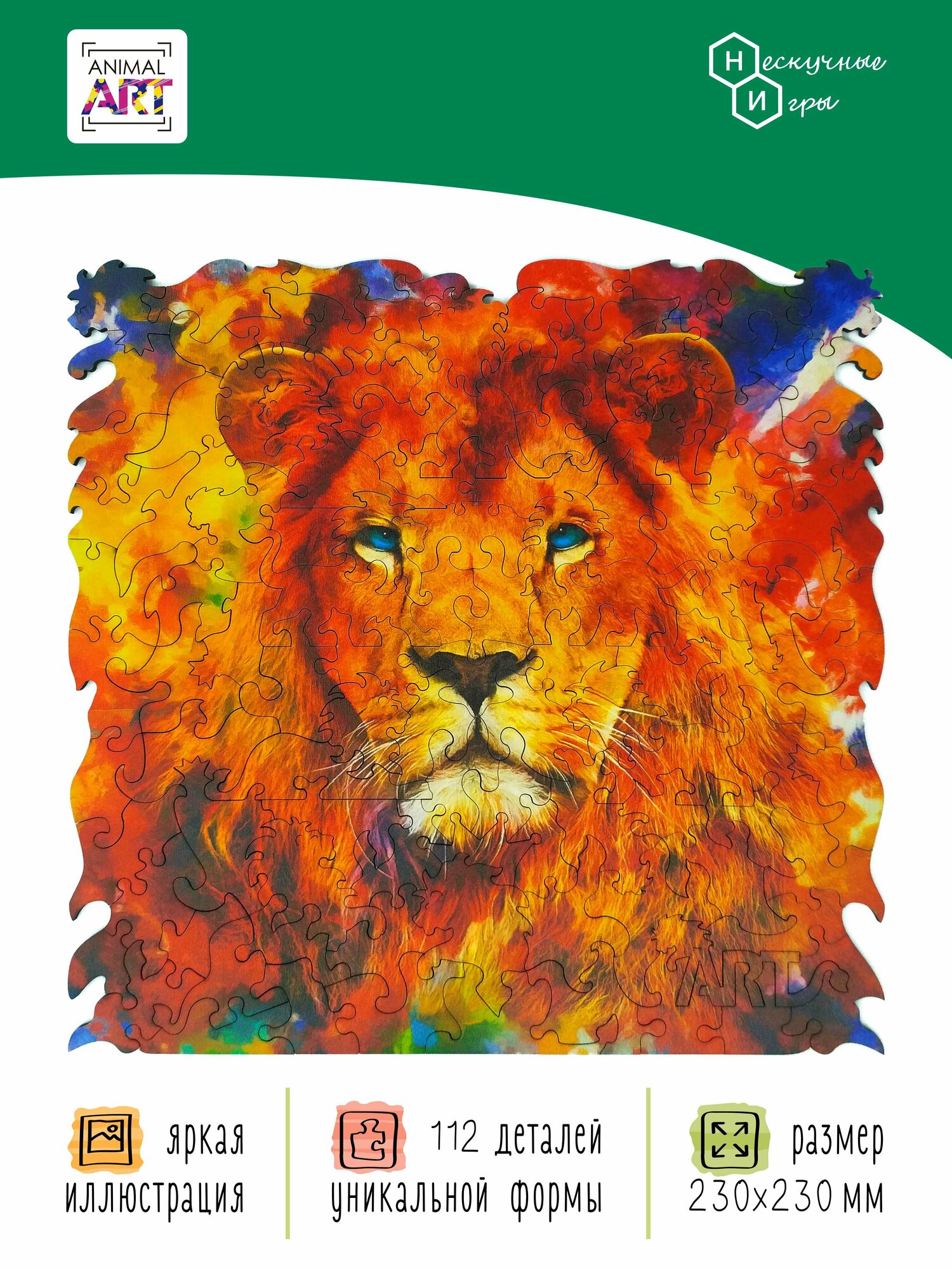 Фигурный деревян.пазл ANIMAL ART - ЛЕВ (112 дет.) Нескучные игры
