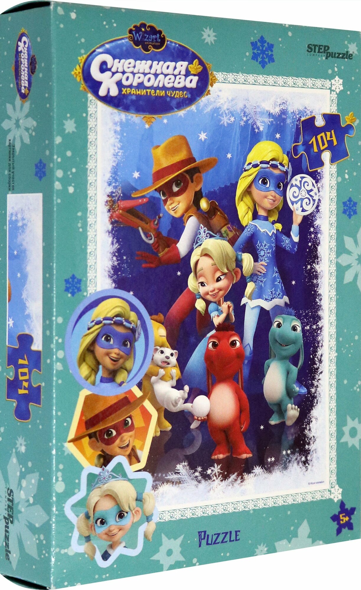Пазл "Снежная королева" состоит из 104 элементов. На его картинке мы видим персонажей мультфильма - Хранителей чудес. У каждого героя есть своя суперспособность: Герда управляет Северным ветром, Кай способен изобрести гениальные машины, а Айси - заморозить любой предмет.