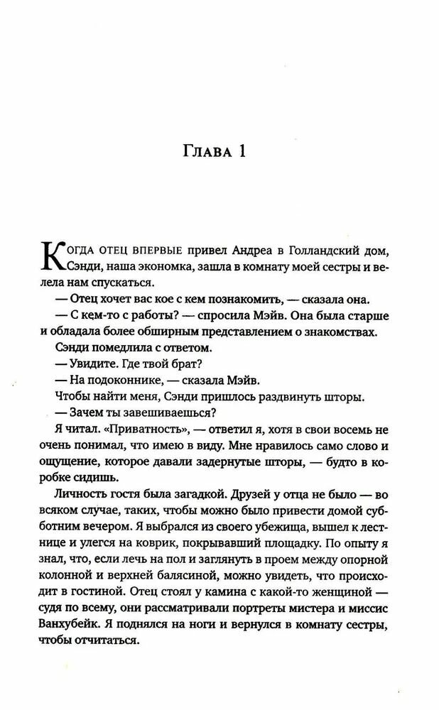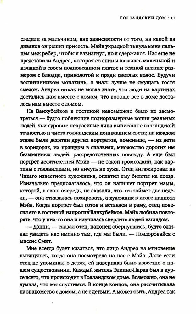 У Дэнни и Мэйв только это и есть: безвременно ушедший из жизни отец, давным-давно превратившаяся в воспоминание мать, будто бы вышедшая из ночного кошмара мачеха и зловещий фамильный особняк. А также взрослая жизнь, которая все никак не начнется: проклятие детства, печать сиротства, невозможность разорвать однажды сформировавшиеся узы. "Голландский дом" - история о победе любви над злом. Победе, замешенной на потерях и во многом неочевидной, потому что в конечном счете читателю предстоит разобраться самому, на чьей он стороне и был ли здесь злодей. И если был - то кто?
