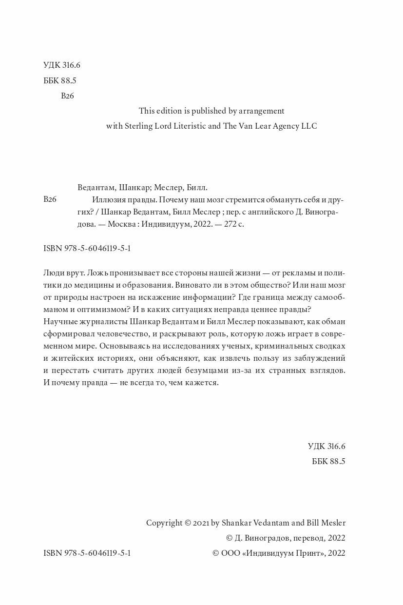 Иллюзия правды Почему наш мозг стремится обмануть себя и других (Билл Меслер); Individuum / Popcorn books, 2021