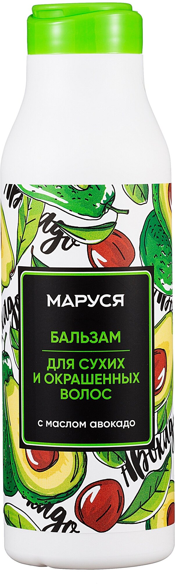 Marussia Бальзам для сухих и окрашеных волос с маслом авокадо 400 мл Маруся Бальзам для сухих и окрашенных волос с маслом авокадо 400 мл. Придать блеск и роскошный ухоженный вид волосам поможет бальзам с комплексом масел оливы и авокадо. Масло авокадо питает волосы по всей длине и придает им гладкость. Масло оливы увлажняет, препятствует спутыванию волос и облегчает их расчесывание. В результате длительного применения бальзама волосы приобретают эластичность, мягкость и шелковистость. Без парабенов и силиконов Способ применения: нанести небольшое количество бальзама на влажные волосы, распределить по всей длине, смыть водой. Бальзам подходит для частого использования. Состав: аква (вода), масло семян подсолнечника, масло плодов оливы, парафиновая жидкость, цетеариловый спирт, глицерилкокоат ПЭГ-7, хлорид цетримония, поликватерниум-7, гидроксиэтилцеллюлоза, масло авокадо, парфюм, гидроксипропилтримоний гуара.