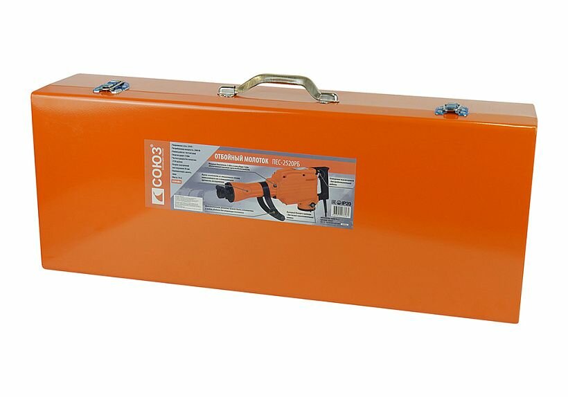 Бетонолом СОЮЗ ПЕС-2520РБ оснащен двигателем мощностью 2000 Вт и имеет силу удара 49 Дж, благодаря чему гарантирует высокую производительность в работе. Он предназначен для разрушения бетона, асфальта и прочих строительных материалов. Для продолжительной работы предусмотрена возможность фиксации клавиши включения. Модель поставляется в металлическом кейсе, который обеспечивает удобство при хранении и транспортировке.