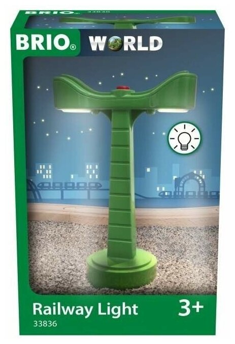 Когда наступает ночь, поездам трудно находить дорогу. Хорошо, если они оснащены прожектором, но он есть не у всех локомотивов. В таком случае незаменимым дополнением к железной дороге Brio станет фонарь. Достаточно нажать на красную кнопку, чтобы мягкий голубой свет подсветил поезду дорогу в темноте. Лампы фонарного столба расположены с двух сторон, поэтому его можно ставить у любого участка рельсов и даже между колеями. Фонарь работает от батареек (2 x LR44), которые уже входят в комплект. После нескольких минут работы лампочки переходят в режим энергосбережения и автоматически отключаются.
