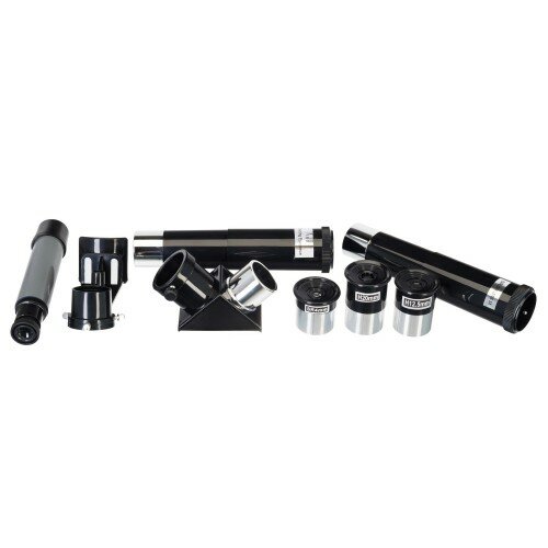 Оптическая схема телескопа – классический рефрактор-ахромат. Так как все линзы сделаны из стекла и дополнены антибликовым покрытием, оптика передает хорошее по качеству изображение и радует глаз четкой прорисовкой деталей. Апертура объектива составляет 60 мм, поэтому основной объект для наблюдений – Луна. Более далекие объекты тоже будут видны, но без деталей на них.