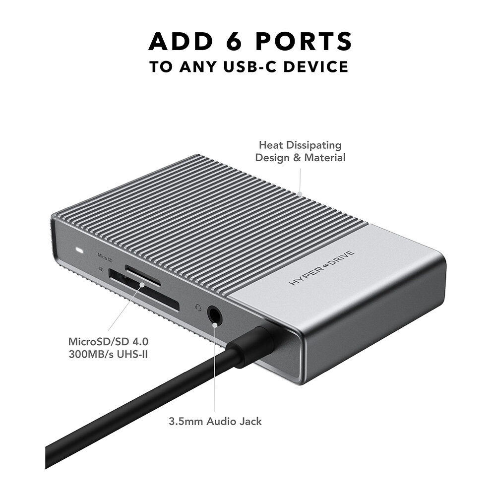 Модель: HyperDrive GEN2 USB-C 6-in-1 (серый)