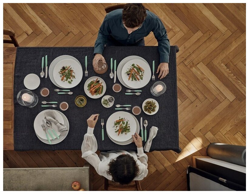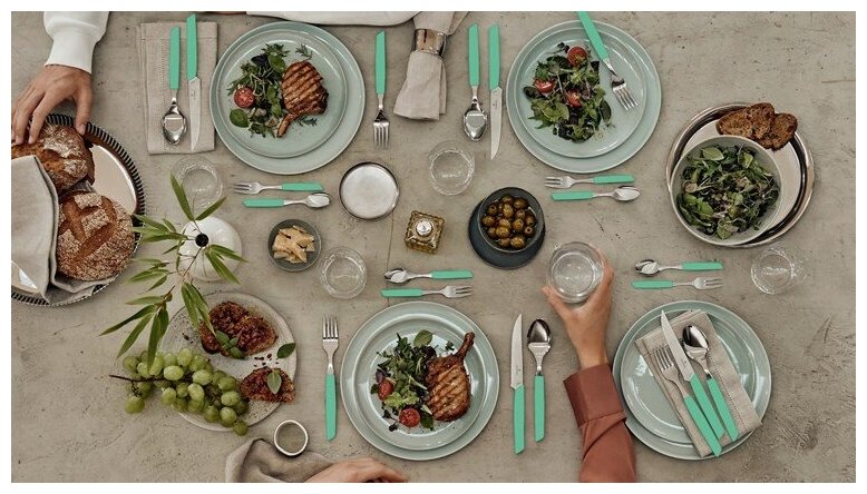 Набор столовых принадлежностей Victorinox Swiss Modern: 6 столовых ножей, 6 столовых вилок, 12 ложек. Серия Swiss Modern Extension привнесёт сдержанную элегантность на вашу кухню. Этот изысканный ассортимент столовых приборов изготовлен из прочной нержавеющей стали, пригодной для мытья в посудомоечной машине. Новые яркие тона и минималистичный чёрный цвет ручек с противоскользящим покрытием придают коллекции современную модную эстетику. Лезвия ножей сверхострые и предназначены для легкого нарезания, в то время как остальная часть ассортимента идеально подходит для непринужденной трапезы, которую можно разделить с семьей и друзьями. Ключевые особенности: Современные столовые приборы для ежедневных трапез. Все ножи оснащены острым лезвием с волнистой кромкой. Изготовлены из нержавеющей стали, с синтетическими ручками современной формы. Характеристики: Материал рукояти: сополимер полипропилена. Тип металла: нержавеющая сталь. Упаковка: складная картонная коробка. Пригодность для мытья в посудомоечной машине: да.