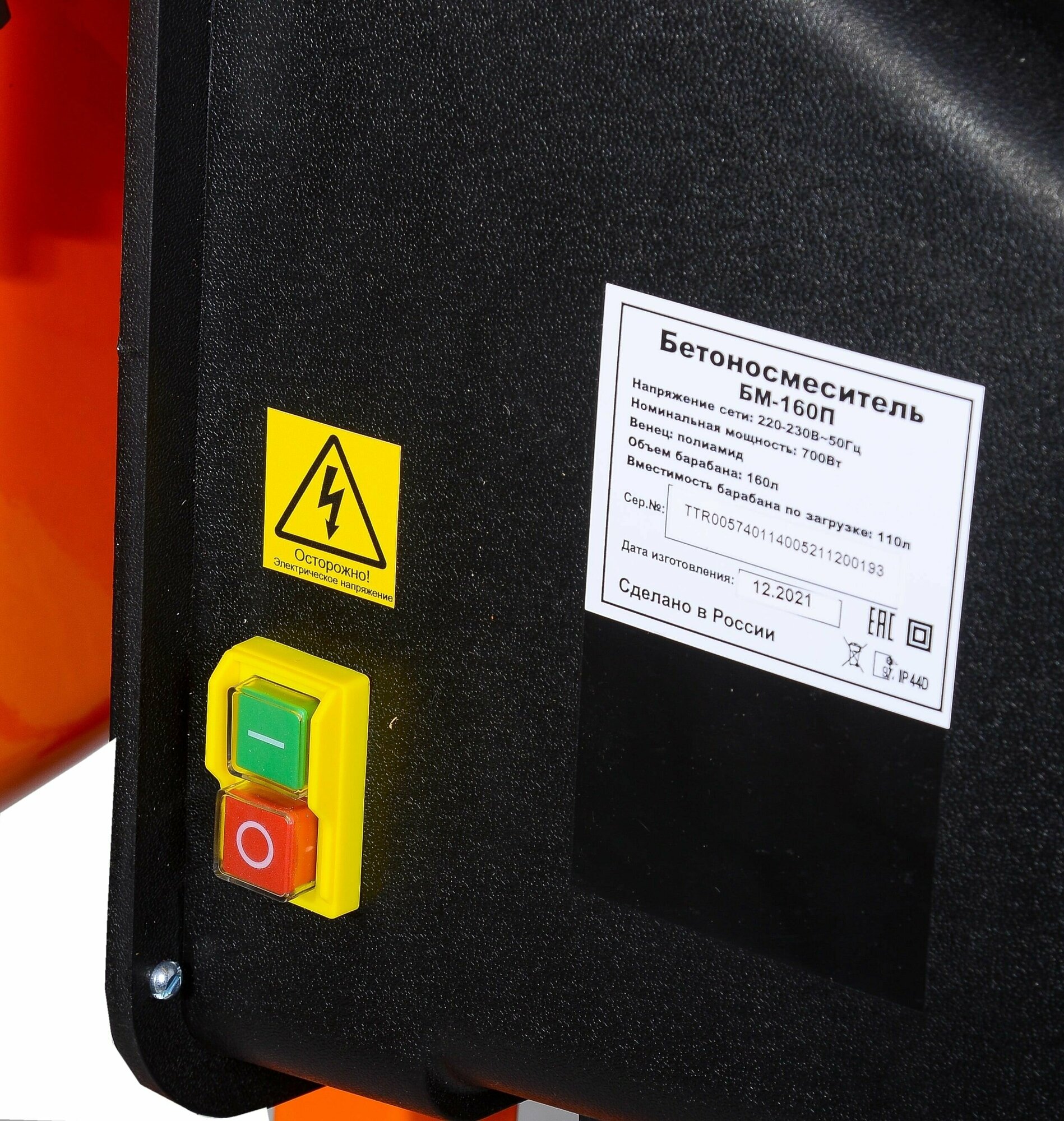 Бетономешалка Вихрь БМ-160 электрический бар.:160л г.р.:110л 700Вт (74/1/14)