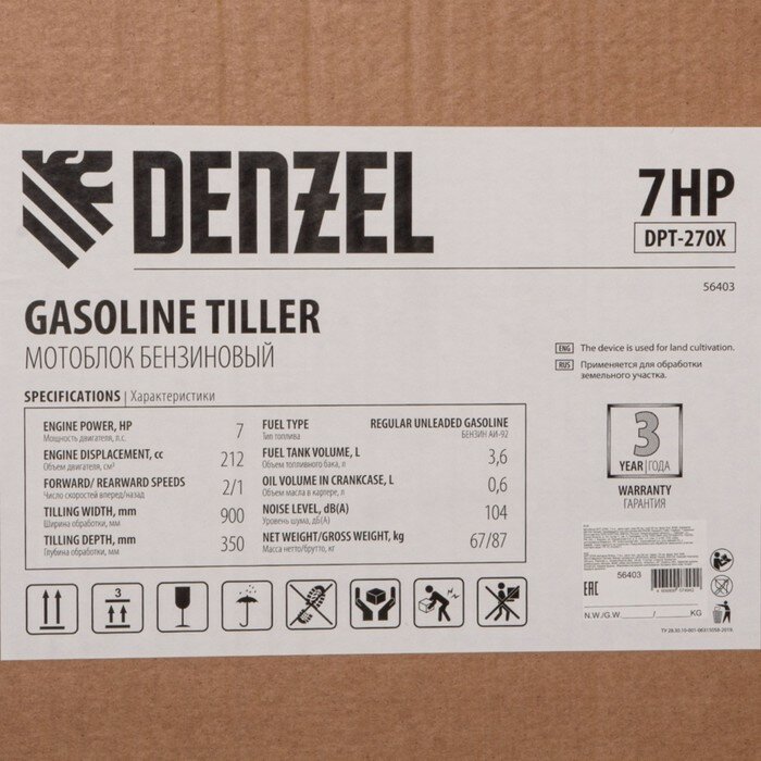 Мотоблок Denzel DPT-270X (56403) бензиновый 5.2кВт 7л.с.
