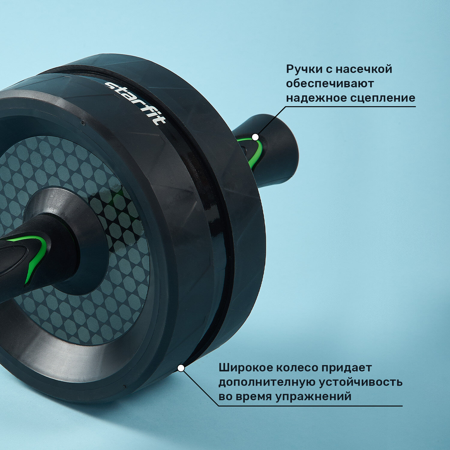 Широкое колесо делает снаряд максимально устойчивым и простым для выполнения упражнений.