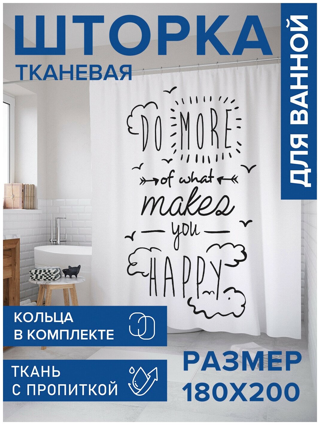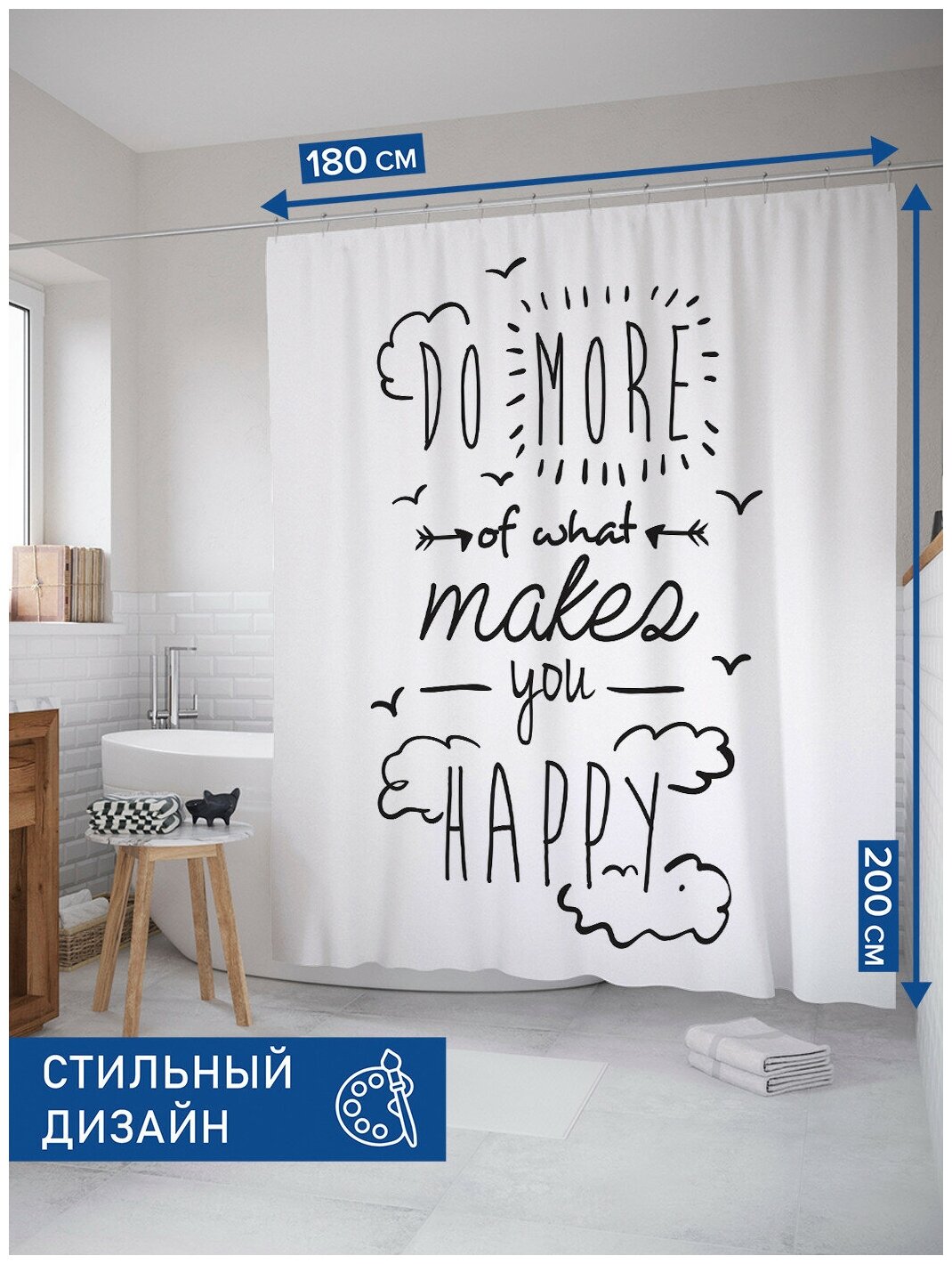 Шторка-занавеска для ванной JOYARTY Штора занавеска из сатена с крючками Делай больше для счастья 200х180 см (размер: 180х200)