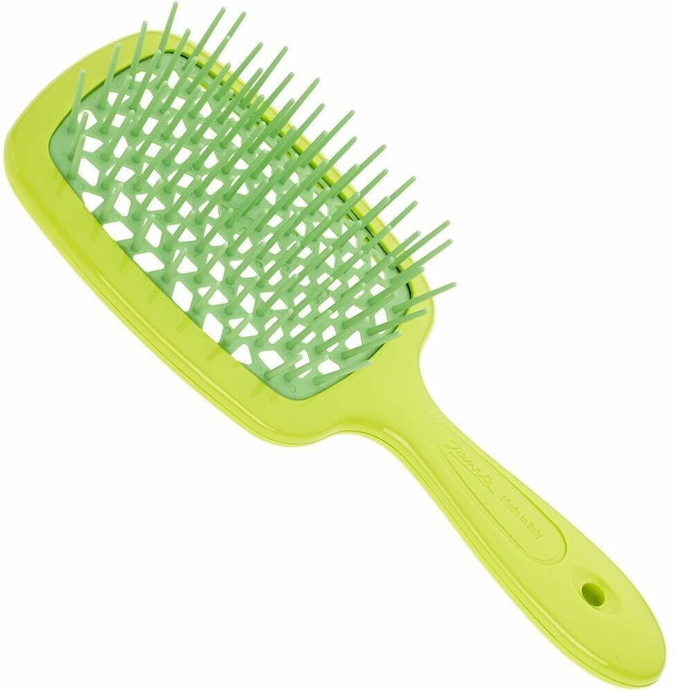 Очень понравилась щетка Janeke Superbrush The Original, в руке лежит хорошо. Удобно расчесывать как сухие, так и влажные волосы, если они запутались, то быстро распутываются, без выдирания. Массаж головы великолепен! Зубчики длинные и мягкие. Для сушки феном тоже подошла благодаря дырочкам. Даже муж оценил, сказал, чтобы купила для него такую же) Цвет красивый. Очень рекомендую!