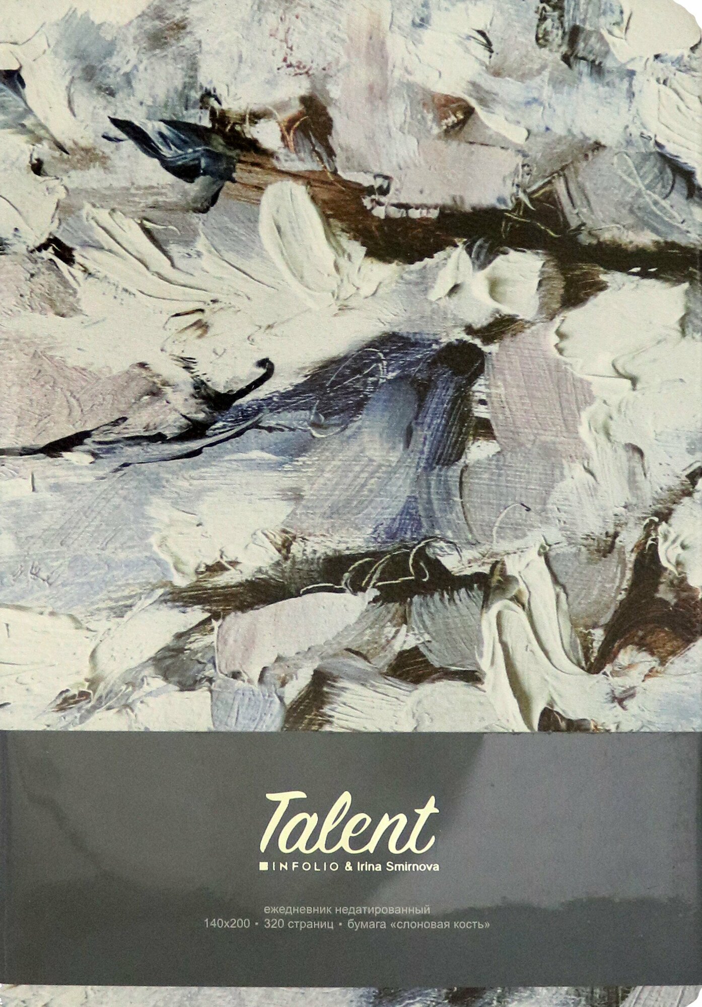 Обложка - интегральная, матовая искусственная кожа с печатью картины художницы Ирины Смирновой. Блок - недатированный, 320 стр., 2 ляссе, форзац - печать 1+0, информационный блок, бумага: слоновая кость, скругленные уголки, кармашек, 70 г/м2, печать 2+2. Особенности: прокрас среза.