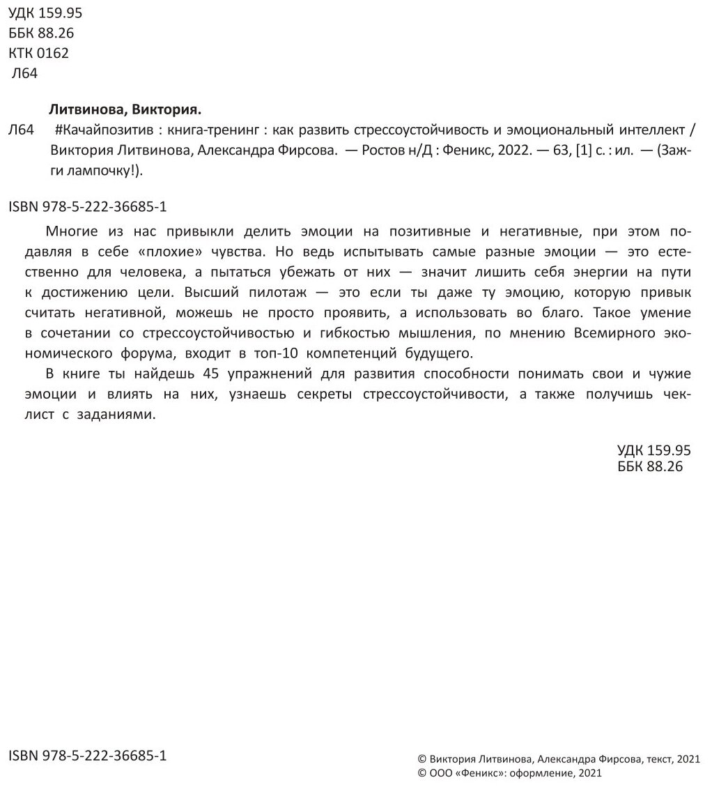 Качайпозитив. Книга-тренинг. Как развить стрессоустойчивость и эмоциональный интеллект (Литвинова Виктория, Фирсова Александра); Феникс, 2022