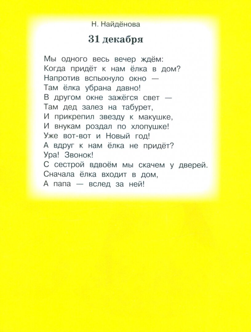 Из этой серии больше всего нравятся книжки именно с иллюстрациями этого художника (И. Литошенко). Очень обаятельные и радостные получились у нее Дед Мороз, Снегурочка, Медвежонок и Зайчик (заготовки для таких аппликаций предлагаются в этой книге). Ребенок в восторге от занятий. Создание праздничного настроения гарантировано. Порадовало также, что в книге есть два замечательных стихотворения: К. Фофанов "Нарядили елку в праздничное платье..." и Н. Найденова "31 декабря".