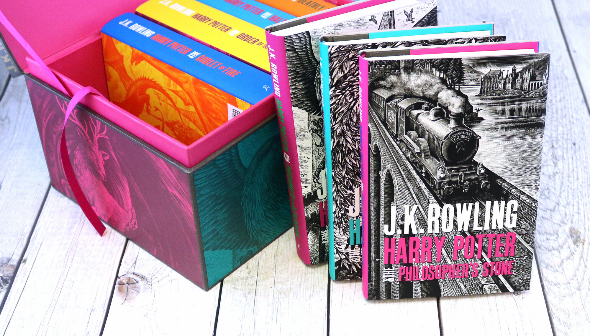 J.K. Rowling's spellbinding storytelling continues to captivate readers worldwide. This stunning box set contains all seven of the classic, multi-award-winning Harry Potter novels in beautiful new hardback editions, featuring elegant new interiors and stylish cover art by noted artist Andrew Davidson, to appeal to an adult readership. The perfect collection for readers new to Harry Potter, fans and aficionados alike.Contains (in reading order): Harry Potter and the Philosopher's Stone, Harry Potter and the Chamber of Secrets, Harry Potter and the Prisoner of Azkaban, Harry Potter and the Goblet of Fire, Harry Potter and the Order of the Phoenix, Harry Potter and the Half-Blood Prince, and Harry Potter and the Deathly Hallows.