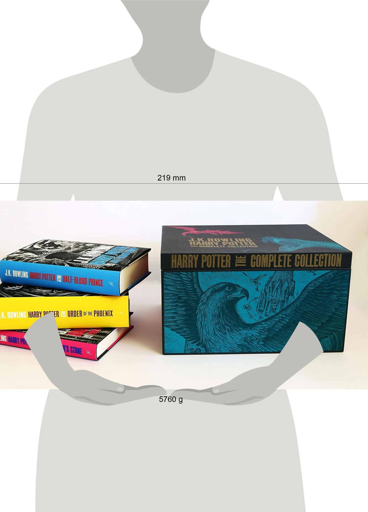 Давно искал себе полный комплект книг на английском языке. В каталоге ЧГ есть наборы дороже и с претензией на большую оригинальность языка, есть собрания со старыми обложками, которые были ещё на первых русских переводах от Росмэн. Но именно этот комплект привлёк своими новыми обложками. Приятнейшая на ощупь суперобложка, удобная лента для вытягивания книг из коробки. Сам бокс очень плотный и тоже приятный. Без суперобложки книжки очень минималистичные и красивые. Страницы плотные, а шрифт самый оптимальный.