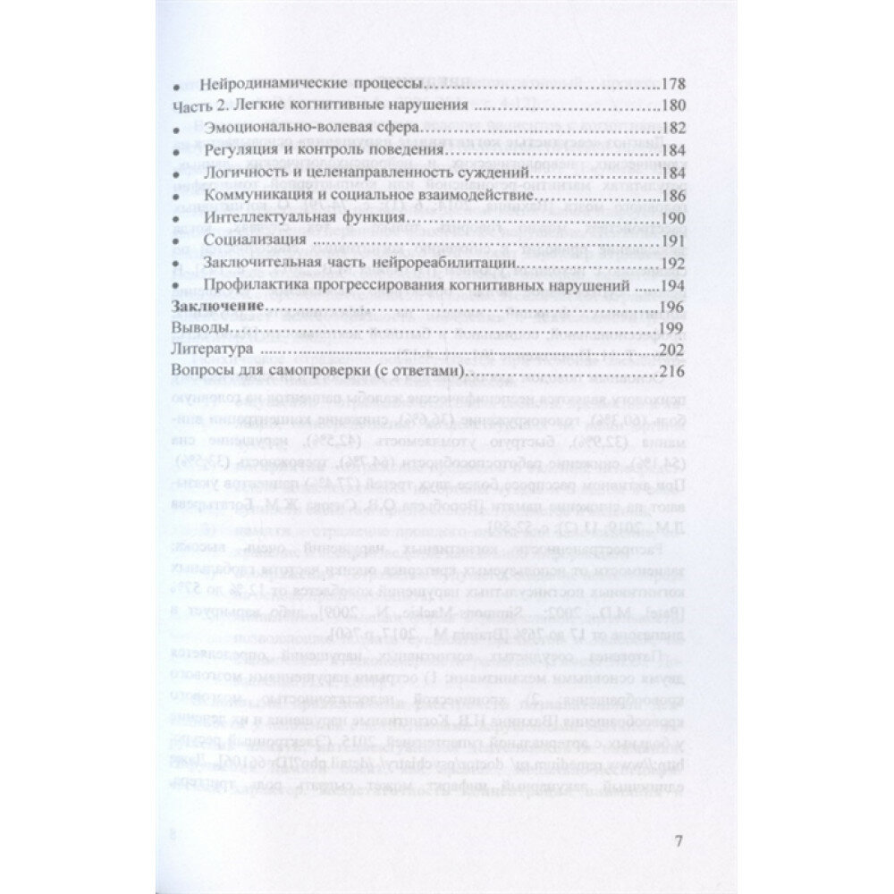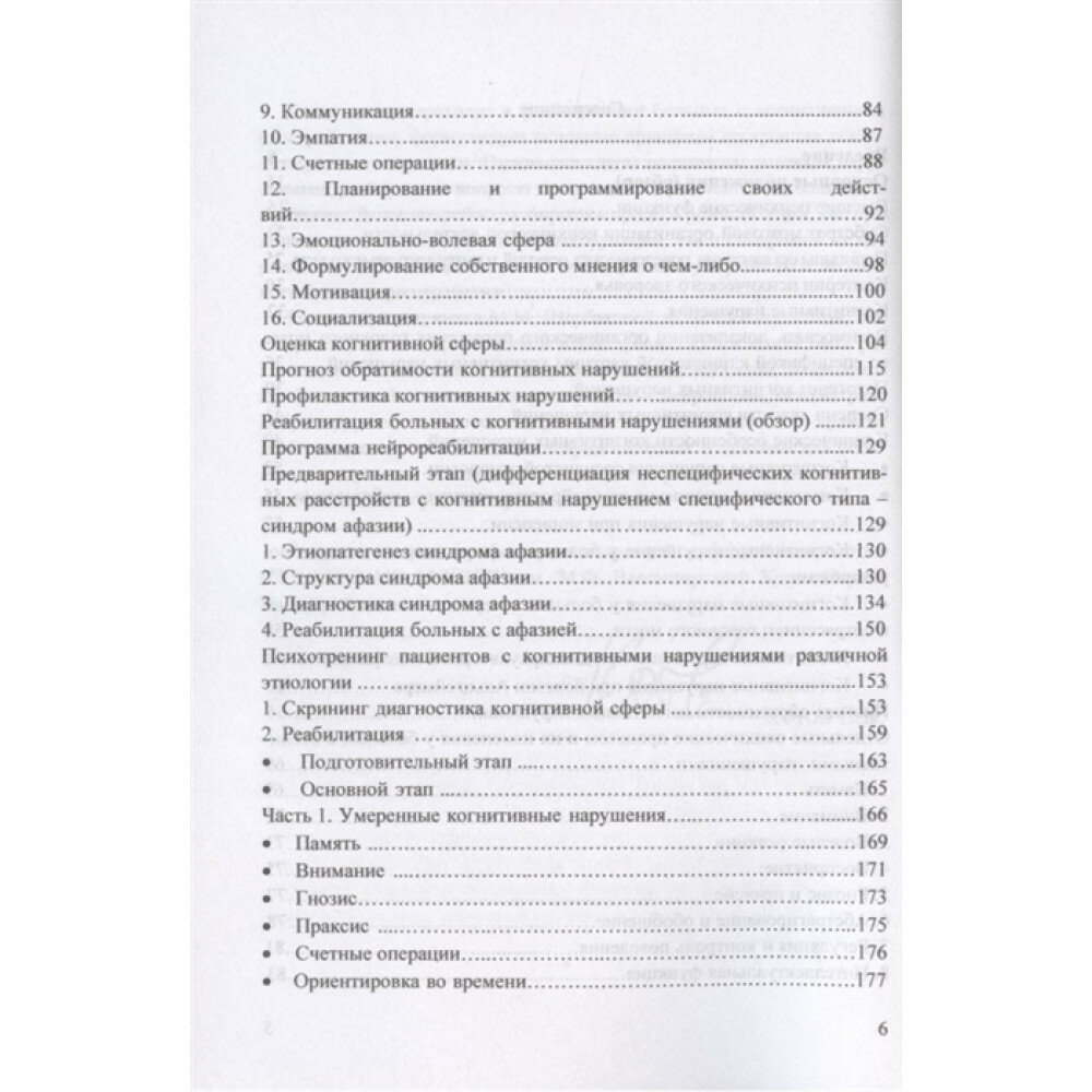 В монографии представлены психические процессы и их патология у больных с когнитивными нарушениями различного генеза (приоритет у самой распространенной - сосудистой этиологии). Дается: оценка когнитивной сферы, прогноз обратимости когнитивных нарушений, их профилактика и реабилитация. Предложены две диагностические методики, позволяющие оценить специфическое когнитивное нарушение (синдром афазии) и неспецифические когнитивные нарушения (определяется степень тяжести и механизм когнитивной дисфункции). Автором представлена программа нейрореабилитации, которая внедрена в клинику. Проведенное исследование позволяет пересмотреть подход к немедикаментозному лечению пациентов с когнитивными нарушениями (с учетом психологической структуры когнитивной дисфункции у неврологических больных), а также наглядно демонстрирует эффективность предложенной реабилитационной методики.