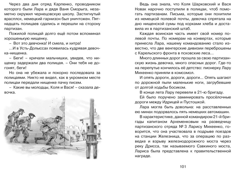 Раньше в советское время издавали множество книг про пионеров-героев, юных антифашистов: и тонких, в мягкой обложке, и в твердом переплете. Сейчас с этим обстоит гораздо хуже. Есть несколько книг, но цены на них довольно высокие. А эта книга совсем небольшая, в ней девять рассказов про юных героев, иллюстрации черно-белые. Это такой бюджетный вариант. И тем не менее для патриотического воспитания она незаменима. Я купила несколько экземпляров в дар для сельских библиотек.