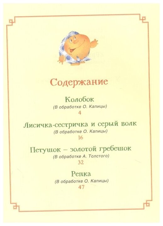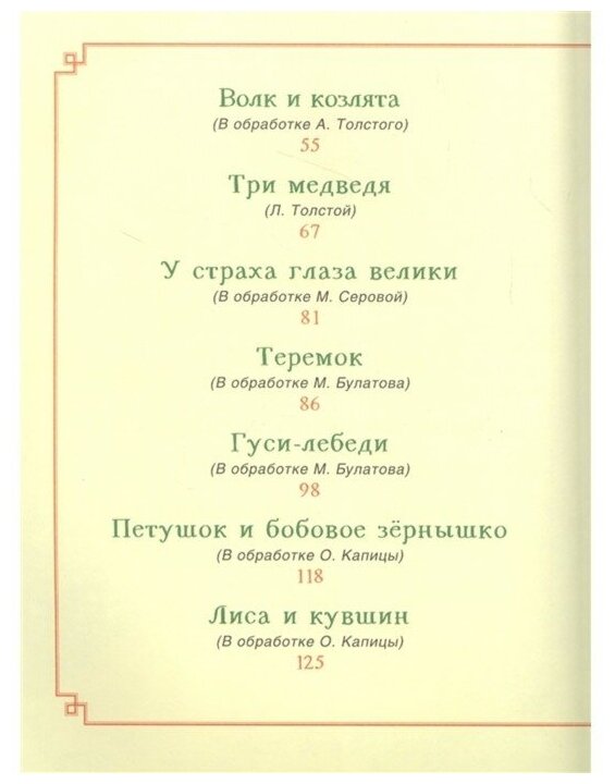 В книгу входят знаменитые русские сказки в классических обработках М. Булатова, О. Капицы и других: «Колобок», «Лисичка-сестричка и серый волк», «Теремок», «Гуси-лебеди». Яркие сюжетные иллюстрации И. Зуева, А. Халиловой и И. Якимовой помогут ребенку погрузиться в мир сказок.