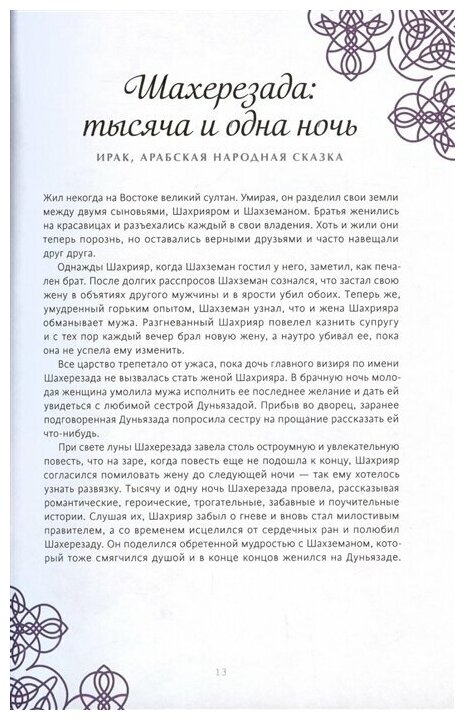 В книге представлены мифологические истории, басни, отрывки из эпосов и сказки — от самых известных и классических до созданных малыми народами в удаленных уголках света. Под этой обложкой вы встретите Русалочку и богиню Мохини, Рапунцель и Йемайю, Аладдина и Хинемоа, а также множество других героев, божеств и фантастических существ. Их истории объединяют повторяющиеся темы победы над злом, преодоления невзгод и обретения любви.