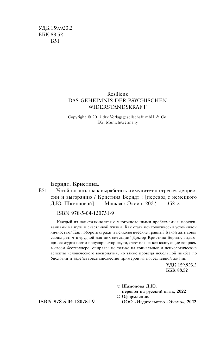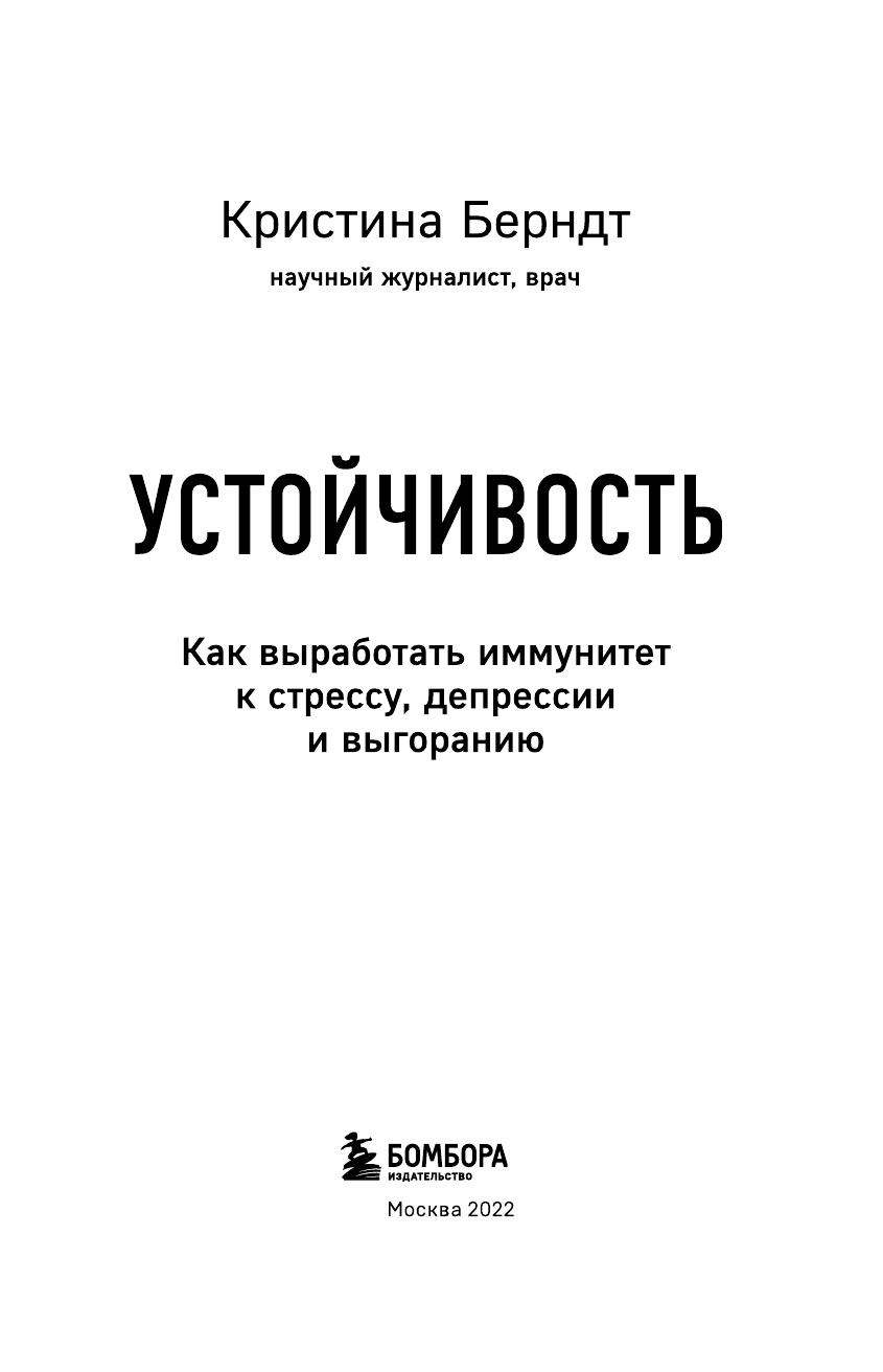 Устойчивость. Как выработать иммунитет к стрессу депрессии и выгоранию (Берндт Кристина); ООО "Издательство "Эксмо", 2022