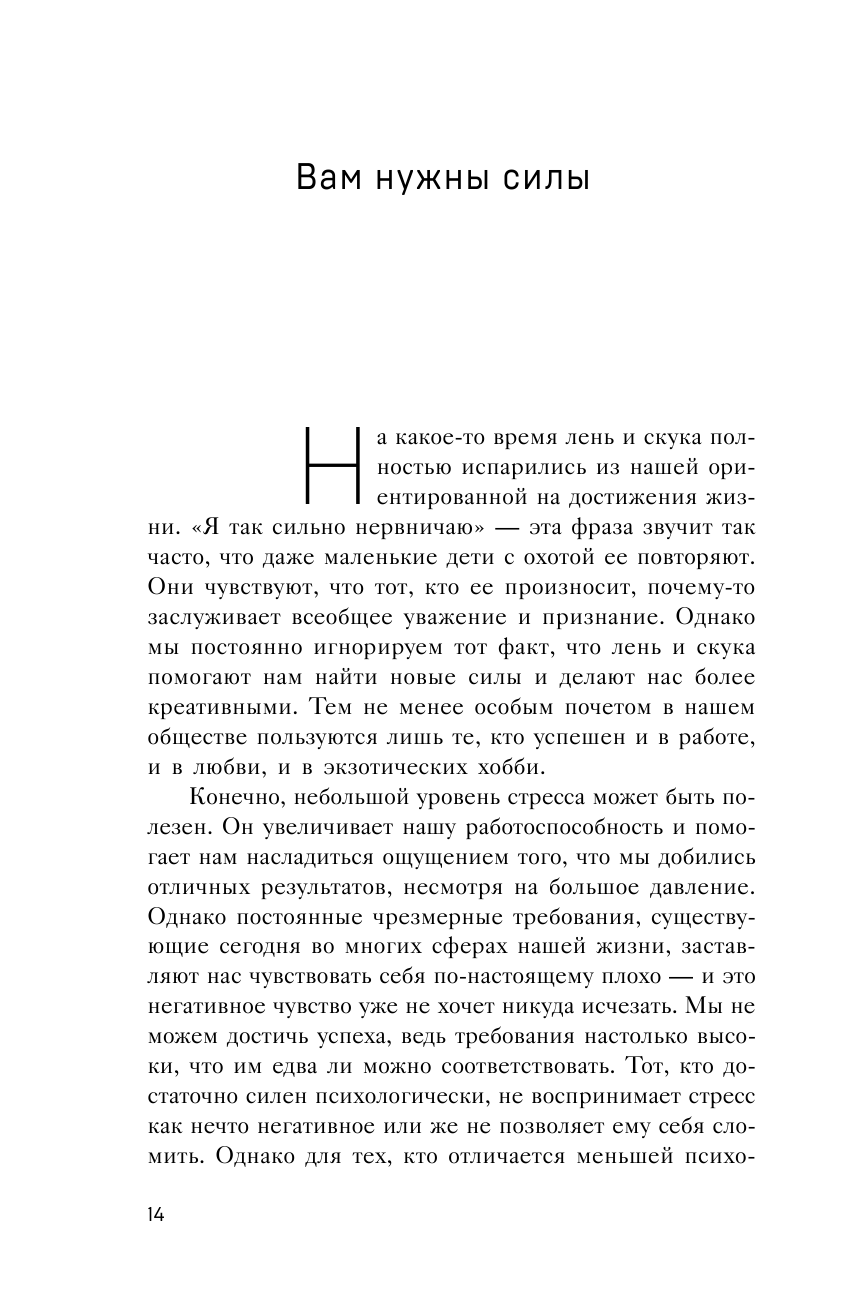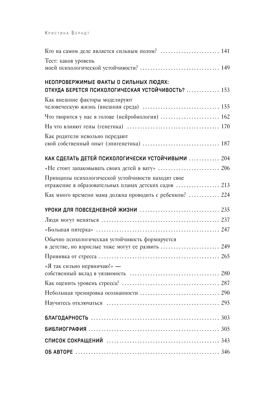 Книга держится в основном на теории. Как таковых практических методик здесь нет, но подробно объясняются причины и механизмы стресса, его возникновения. То же самое о стрессоустойчивости: какие условия нужны для её формирования, что можно, а что не стоит делать. Затрагиваются и физиология, и генетика, и воспитание детей. Книга держится не столько на историях людей, сколько на результатах научных исследований. Не стоит рассчитывать на то, что найдете здесь конкретные методики по формированию стрессоустойчивости. Здесь упор скорее на то, что каждый сам делает выводы для себя, исходя из результатов научных исследований или историй людей. В книге также встречается информация в форме интервью или беседы.