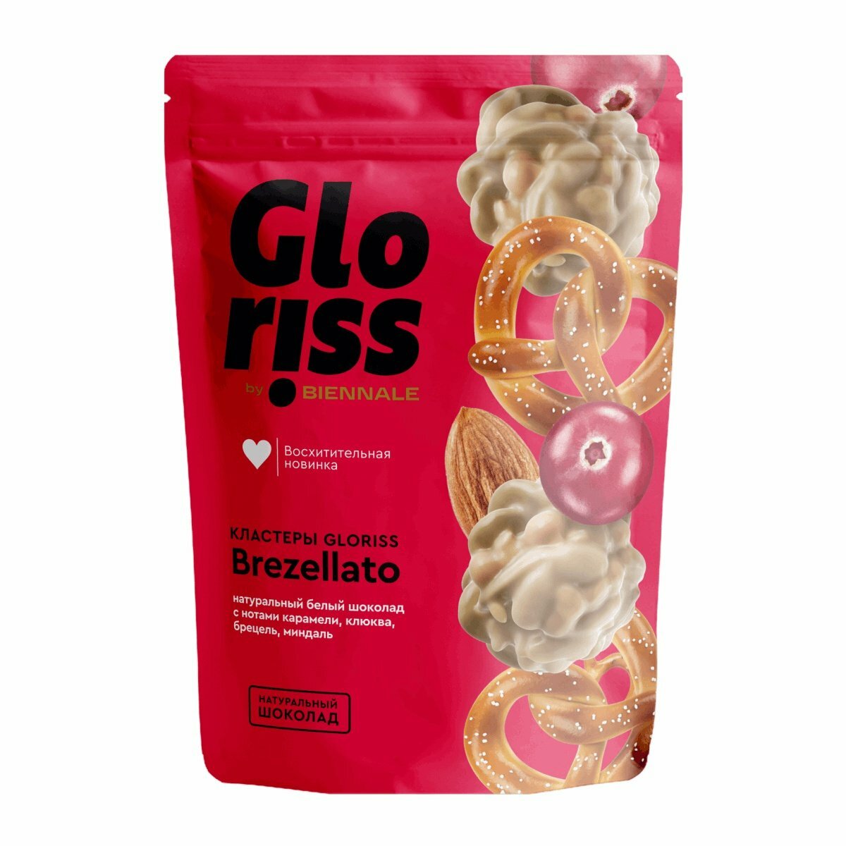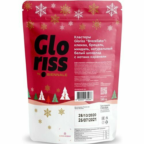 Восхитительное сочетание хрустящего соленого брецеля, кисло-сладкой клюквы и кусочков миндаля в премиальном белом шоколаде подарят вам поистине праздничное настроение!Шоколадные кластеры серии Gloriss - это идеальное сочетание отборных орехов, семян, фруктов и воздушных злаков в нежнейшем бельгийском шоколаде. Созданы специально для приведения вашей энергоструктуры в ресурсное состояние.Победитель конкурса «Лучший продукт» на международной выставке «ПродЭкспо»Серебряный призер рейтинга Forbes 10 самых успешных новых брендов в России – 2020. СоставБелый шоколад (сахар, масло какао, сухое цельное молоко, эмульгаторы: соевый лецитин, ароматизатор: Ванилин), семена тыквы очищенные жареные, семена подсолнечника очищенные жареные, рис воздушный (мука рисовая, мука пшеничная, сахар, соль), семена кунжута жареные, краситель натуральный: карамель, ароматизатор. Продукт может содержать следы арахиса и других орехов.
