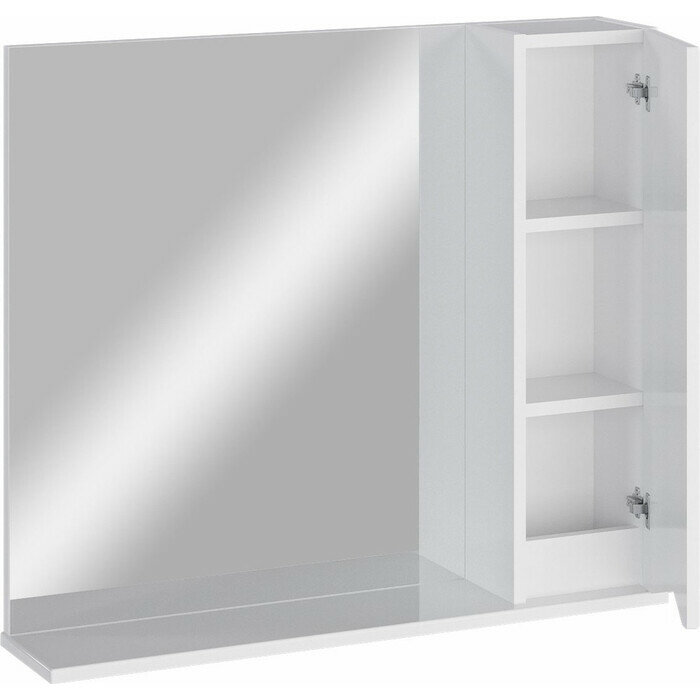 Зеркало со шкафом подвесной SanStar Каскад 60 однодверный для ванной комнаты белый производится на российском заводе, оснащенном высокотехнологичным европейским оборудованием под брендом SanStar. Под контролем отдела качества, с соблюдением ТУ и ГОСТ. Товар относится к серии Практик, отличительной особенностью которой являются оптимальное соотношение качества и цены. Линейка мебели Каскад, выполненная в современном стиле, внесет в Вашу ванную комнату неповторимый дизайн и обновление. Для покрытия фасада изделия используется высококачественная глянцевая пленка увеличенной толщины. Петли с доводчиками Boyard. Количество полок, выполненных из ЛДСП, без учета корпуса мебели 2. Одна дверца с доводчиками, открывающаяся вправо. Зеркальная поверхность тонированная и имеет усиленную износостойкость.