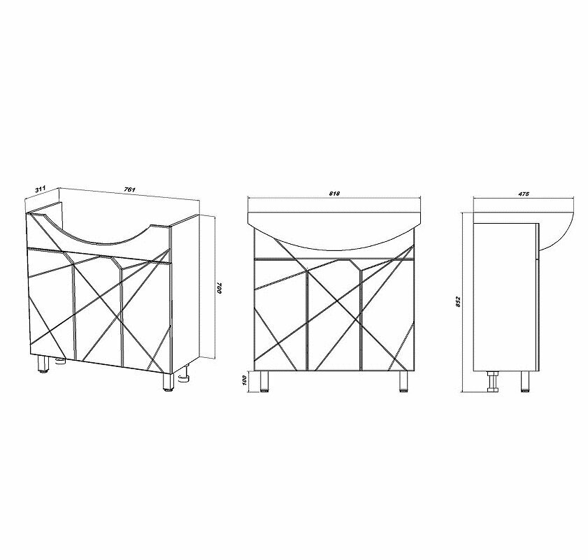 - Габариты корпуса тумбы (ШхВхГ): 772х800х309 мм.