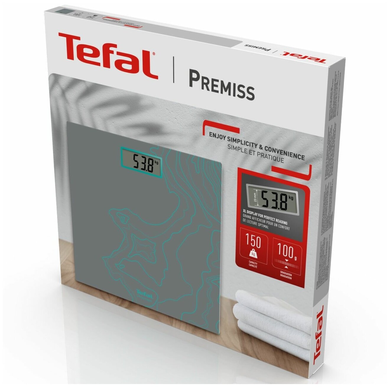 С простыми и удобными напольными весами Premiss от Tefal взвешиваться каждый день или время от времени — легко! Тонкая и широкая платформа весов выполнена из закаленного стекла и выдерживает вес до 150 кг, имеет большой цифровой дисплей и функцию автоматического включения и выключения.