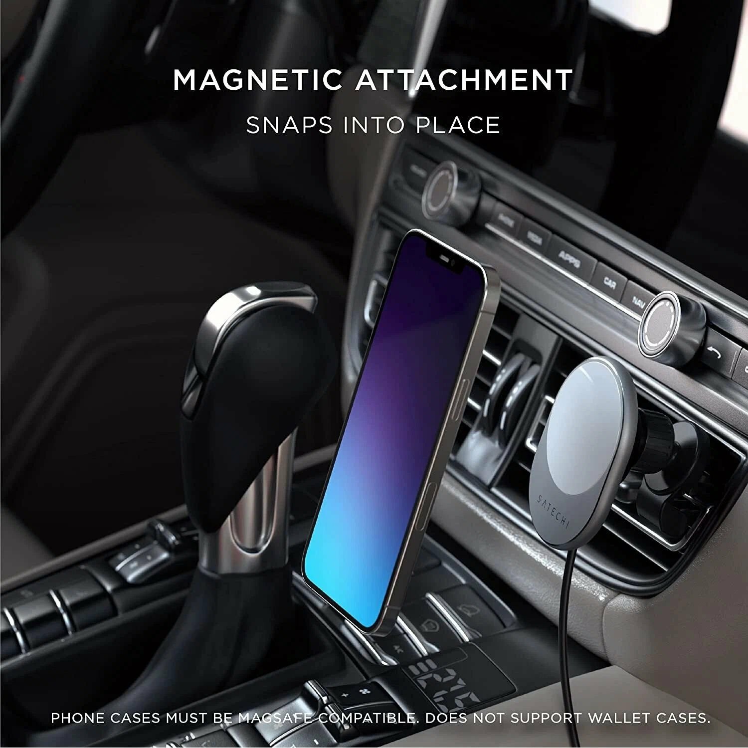 Благодаря беспроводной зарядке Qi, удобному магнитному креплению и современному алюминиевому дизайну беспроводное магнитное автомобильное зарядное устройство Satechi позволяет легко заряжать iPhone независимо от того, куда вы направляетесь - будь то поездка на работу или просто прогулка на автомобиле.