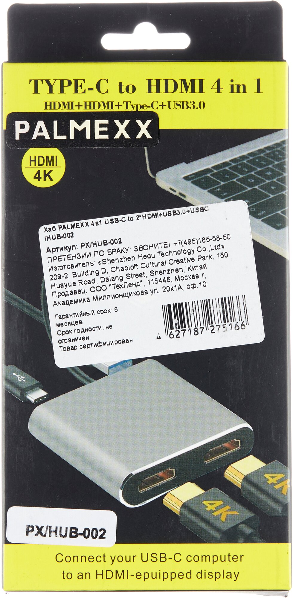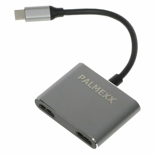 Адаптер-переходник (Хаб) PALMEXX 4в1 USB-C to 2*HDMI+USB3.0+USBC способен расширить возможности ноутбука с разъемом Type C. Корпус выполнен из надежного и качественного алюминия со вставками из пластмассы. USB-концентратор имеет эргономичный дизайн.