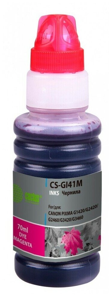 Чернила Cactus GI-41 M пурпурный, флаконов: 1, объём 70мл, для Canon PIXMA G1420/G2420/G2460/G3420/G3460