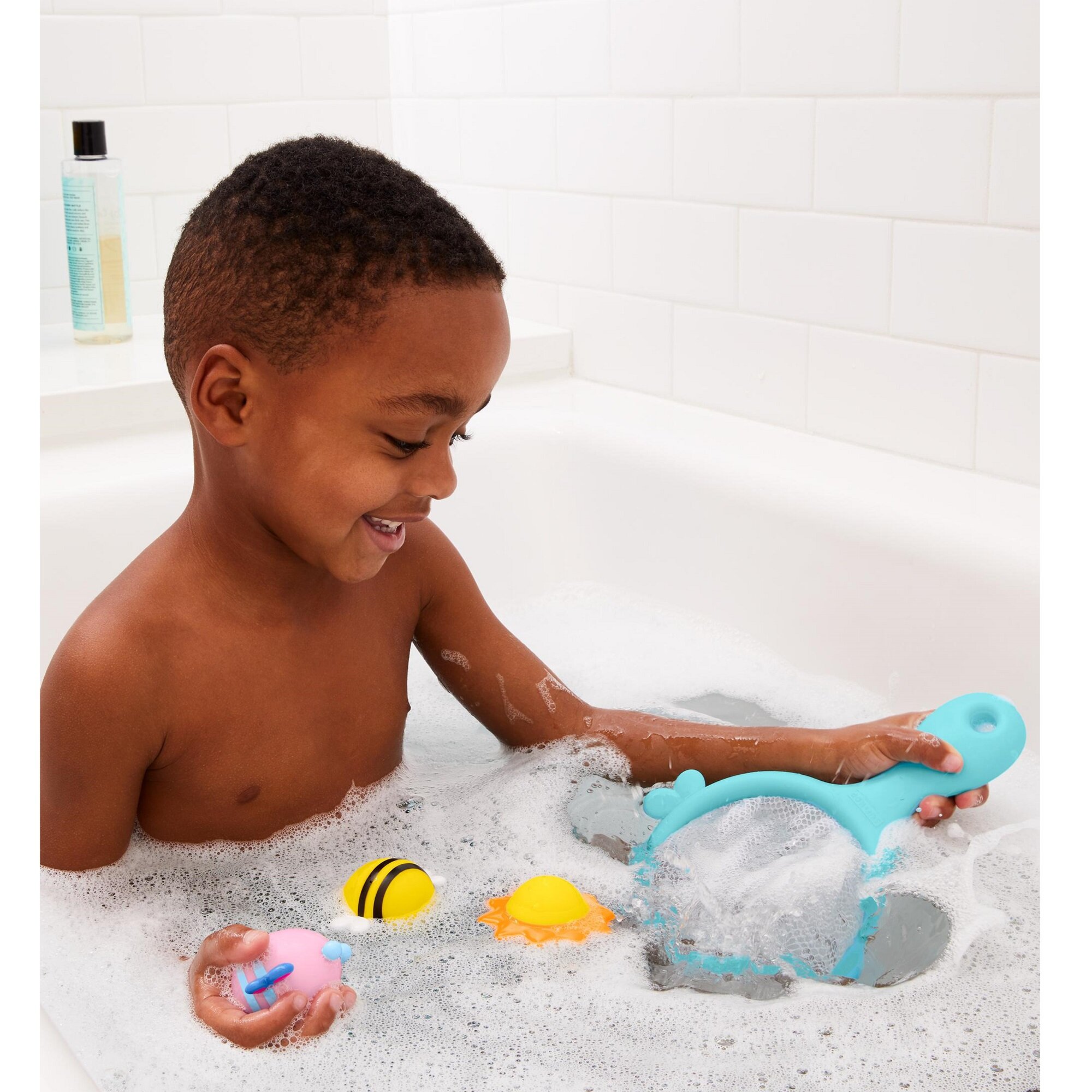 Черпай, брызгай, лови, плыви! Очаровательный набор из 4 предметов включает в себя сачок, которую легко удержать маленькими ручками, а также три очаровательных фигурки животных для дополнительного удовольствия во время купания—поймайте их, если сможете!