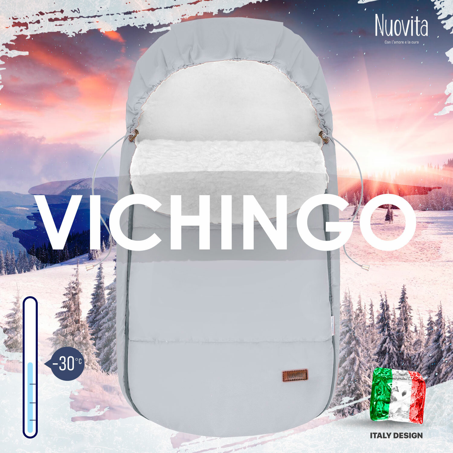 Меховой конверт Vichingo от итальянского бренда Nuovita предназначается для детей в возрасте от 0 до 3-х лет. В холодную погоду этот теплый практичный аксессуар позволит проводить с малышом много времени на свежем воздухе. Конверт универсален и помещается в коляске-люльке, прогулочной коляске и в автокресле любого размера. Основа конверта - смесовая овечья шерсть, представляющая собой сочетание натуральной овчины и текстильного материала, который значительно уменьшает вес изделия (конверт весит 0,7 кг). Мяг