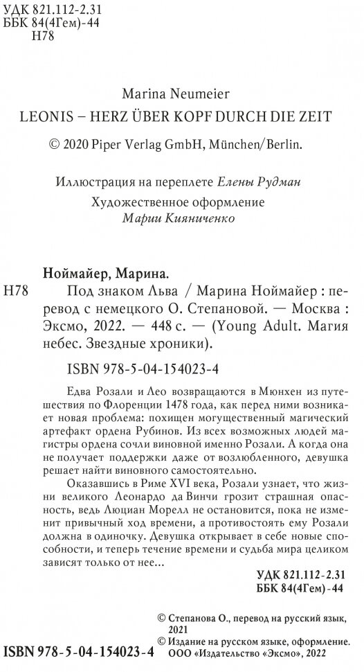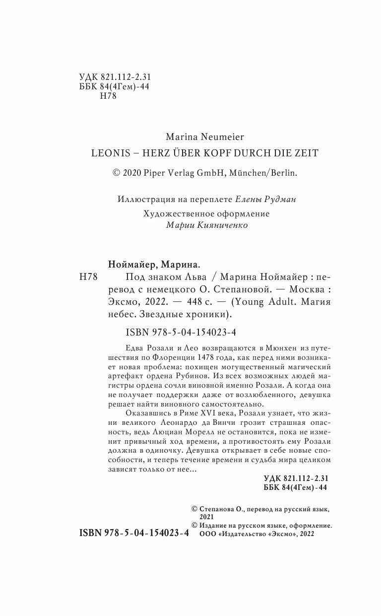Книга: Под знаком льва (Ноймайер Марина); ООО "Издательство "Эксмо", 2021