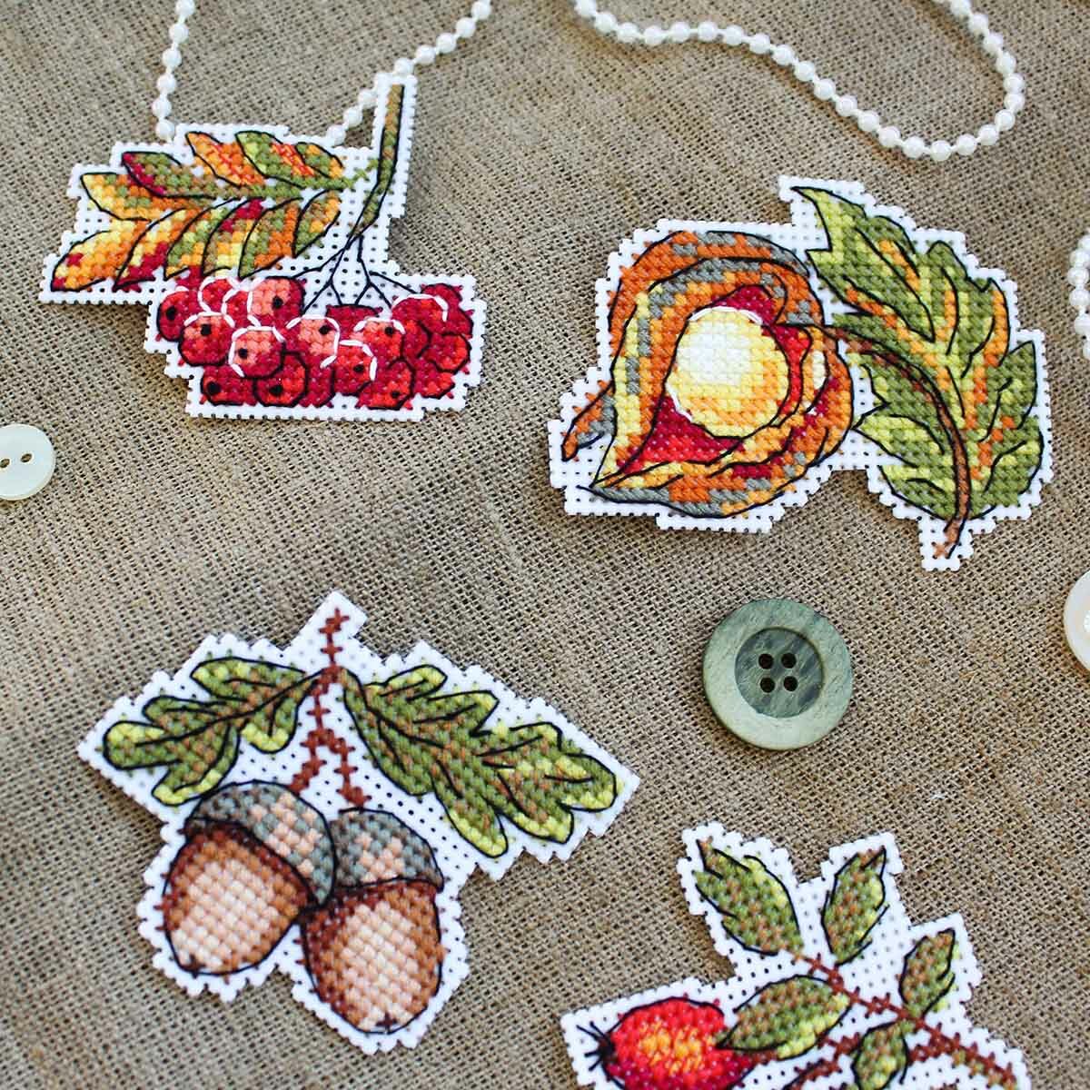 Вышитые магниты 'Дары осени' на холодильник – это оригинальные сувениры и превосходный подарок. Чтобы сделать такой сувенир, достаточно владеть техникой 'крест'. Пяльцы или рамки не понадобятся – пластиковая канва отлично держит форму. Готовые элементы надо вырезать по контуру. К оборотной стороне фиксируется фетр, который маскирует изнанку, и затем фиксируется магнитное полотно.