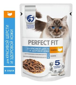 для красивой шерсти и здоровой кожи индейка в соусе пауч 75г PERFECT FIT с индейкой в соусе 75 г