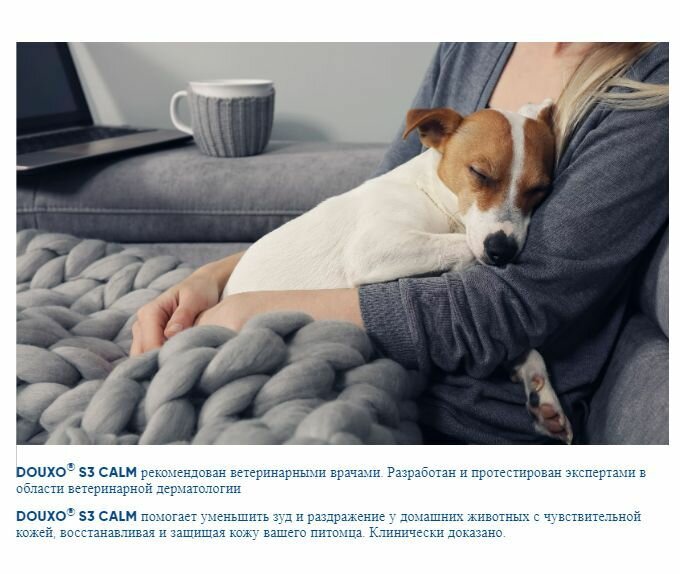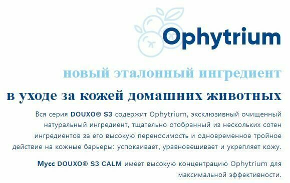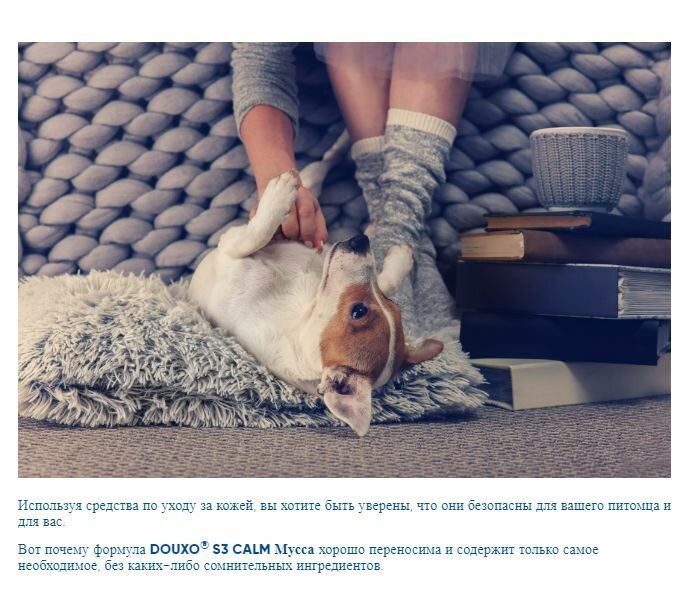 Применение: мусс предназначен для применения собакам и кошкам с чувствительной кожей, склонной к раздражению и зуду. Успокаивает, очищает и укрепляет кожный барьер, увлажняет и облегчает распутывание шерсти, делает шерсть мягкой и блестящей. Для достижения лучшего эффекта Дуксо®S3 Кальм мусс рекомендуется применять попеременно с Дуксо® S3 Кальм шампунем.