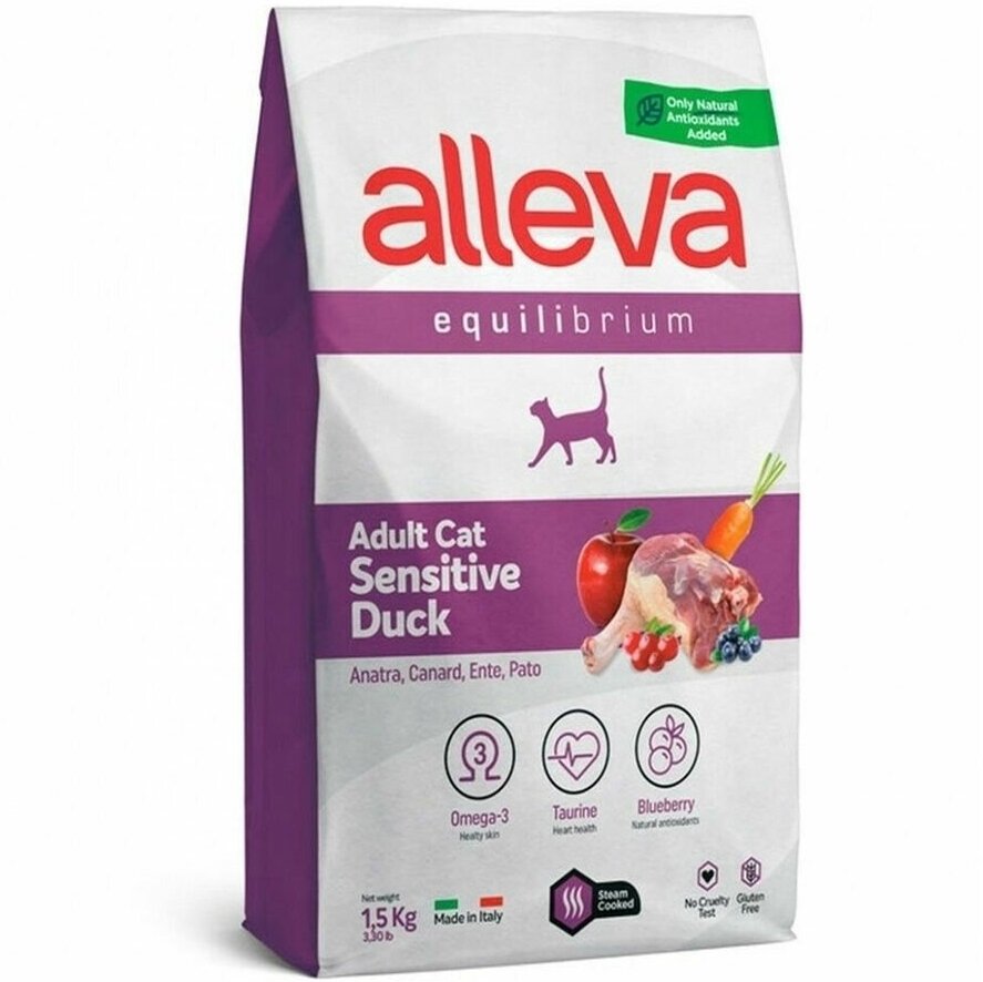 Alleva Equilibrium — качественные и питательные ингредиенты, приготовленные по собой формуле на пару, для максимальной сохранности полезности корма. В состав кормов Alleva Equilibrium добавлены фрукты и овощи, которые выполняют роль дополнительного источника растворимой клетчатки, витаминов и минералов, а также природных антиоксидантов, обеспечивающих свежесть корма на протяжении всего срока годности