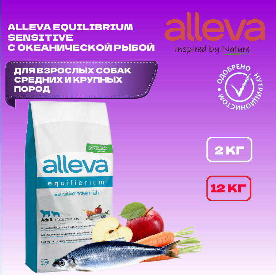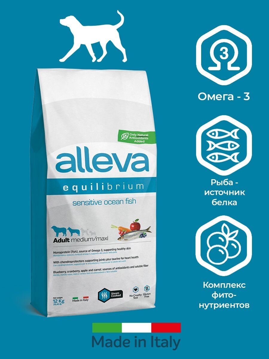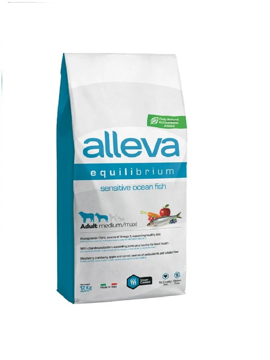 Equilibrium Sensitive для средних и крупных пород океаническая рыба сух. 12кг Alleva Adult Sensitive Ocean Fish Medium/Maxi
