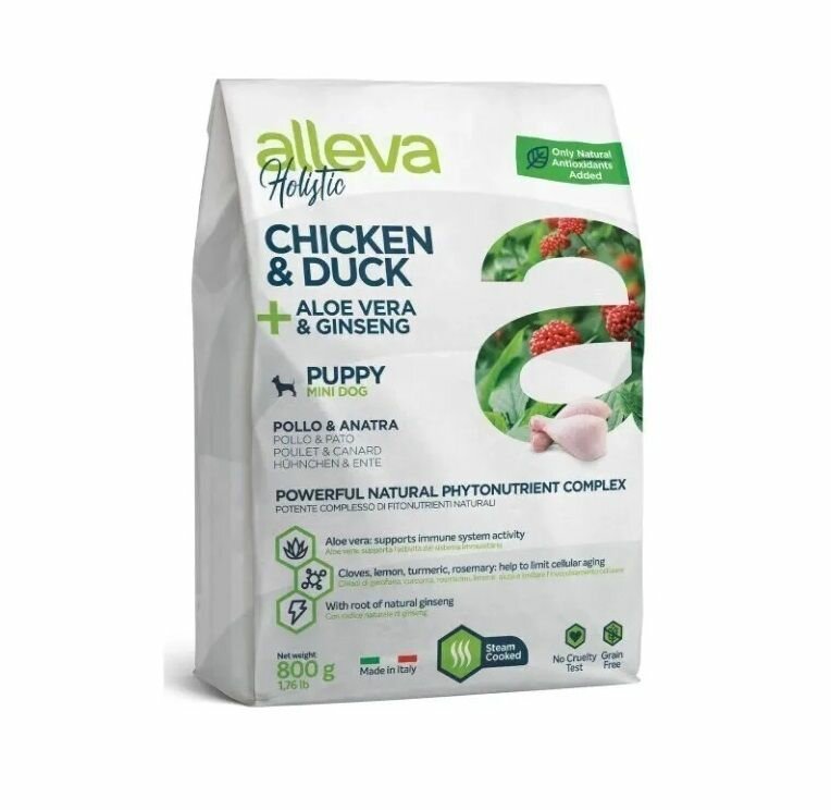 Holistic для мелк.пород курица утка с алое вера и женьш. сух.800г Alleva Holistic Puppy/junior Mini