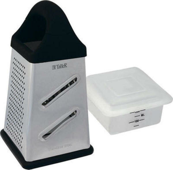 Терка TalleR TR-1908 – качественная и функциональная! Эта терка оснащена множество разных лезвий, и вы сможете натереть любой продукт. Благодаря силиконовым вставкам терка не будет скользить по поверхности, ее удобно держать в руке. TalleR TR-1908 не подвержена коррозии и деформациям, поэтому прослужит вам долгие годы.