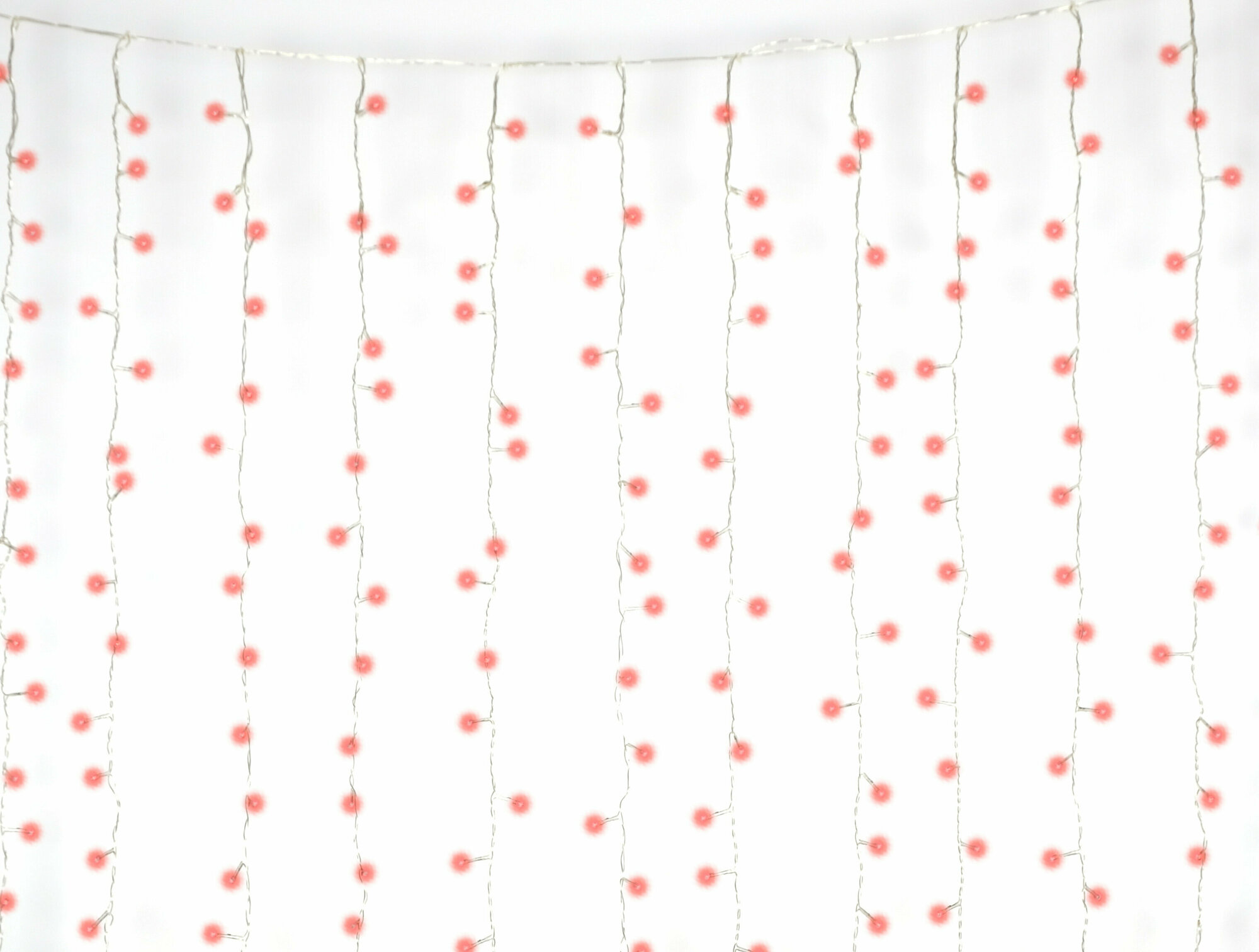 Гирлянда-занавес способна создать волшебную ауру в помещении, она будто просится, чтобы ее повесили на витрину или окно. Такую модель гирлянды можно использовать не только в преддверии новогодних праздников, но и для украшения помещения в любое время года. Огоньки гирлянды не только украсят и дополнят интерьер, но и станут источником дополнительного освещения в комнате. Конструкция декорации состоит из основного провода длиной 1,5 метра с 16 подвесами - нитями, содержащими 544 красных светодиода. Расстояние между нитями-подвесами – 6,5 см. Материал изоляции проводов – ПВХ. Возможно последовательное подключение до 8 занавесов.
