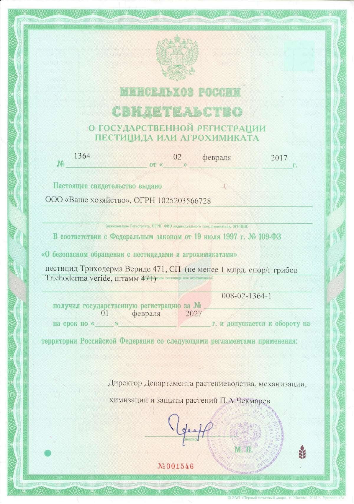 Попадая во влажную почву, споры Триходермы прорастают, выделяя природные антибиотики и обеззараживая почву вокруг. При этом препарат обладает длительным действием: уничтожает покоящиеся и зимующие стадии патогенов. Попадая на поврежденный участок больного растения, споры прорастают, питаясь больной тканью, и одновременно лечат растение.