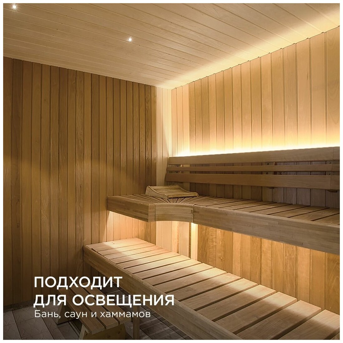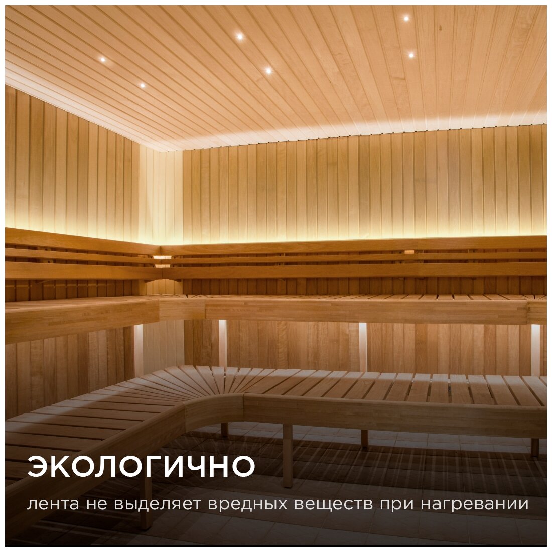 Светодиодная лента для бани и сауны предназначена для установки в помещениях с повышенной концентрацией влажности и повышенной температурой. Герметичная силиконовая оболочка позволяет использовать светодиодную ленту в банях и саунах. Не использовать в воде! Отрезать светодиодную ленту можно в специально отмеченных местах, которые располагаются через каждые 50 мм. Преимущества: - Подходит для использования в бане и сауне в качестве основного освещения и для декора.- Энергоэффективность в 5 раз выше, чем у традиционных ламп накаливания.- Может эксплуатироваться при повышенной влажности и температуре от -30С до +100С.- Высокая светоотдача, равномерное свечение.- Длительный срок службы более 40 000 часов.- Простота монтажа.- Равномерное свечение по всей длине.