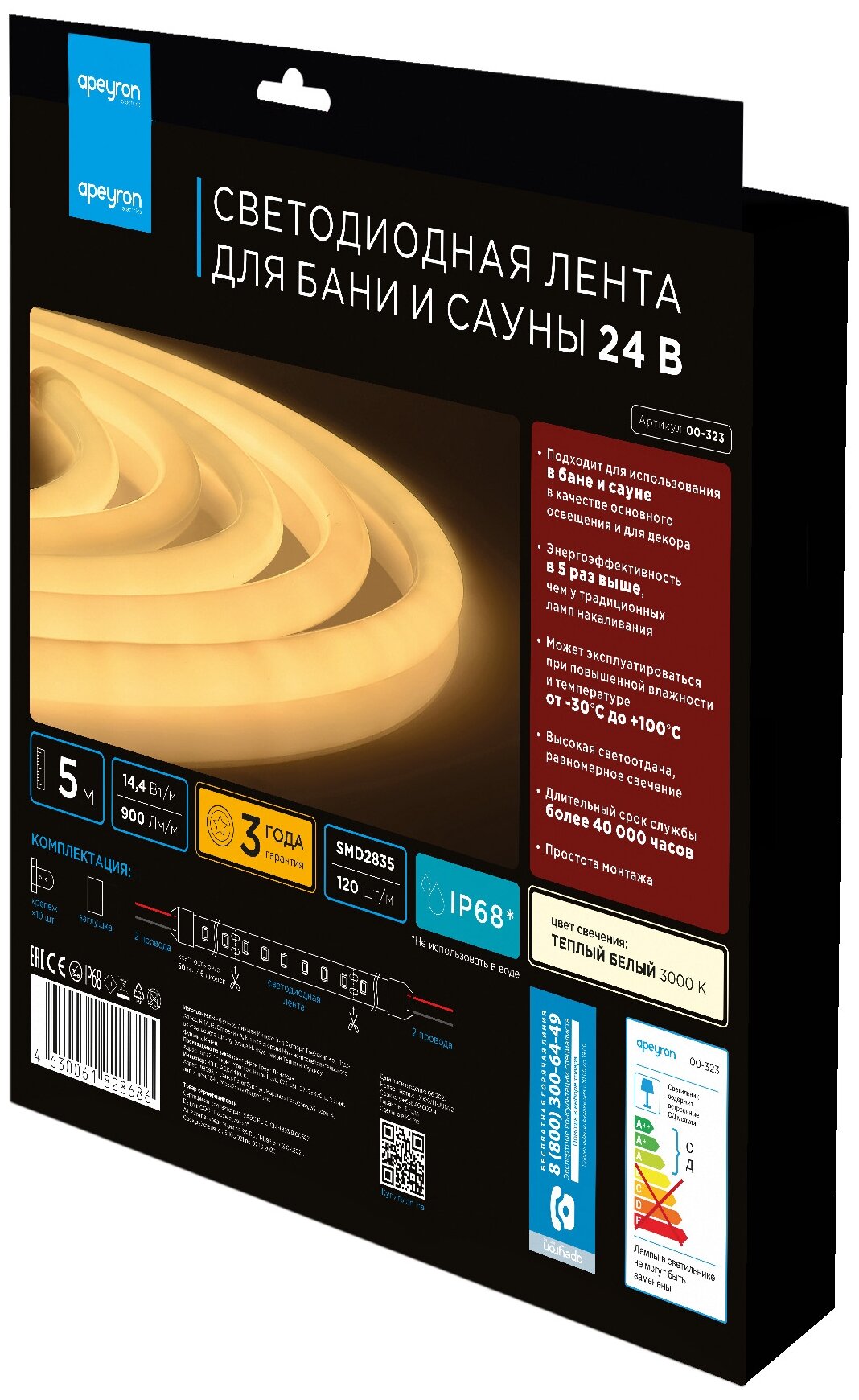 Лента светодиодная для бани и сауны 00-323 24 Вт теплый Apeyron Electrics