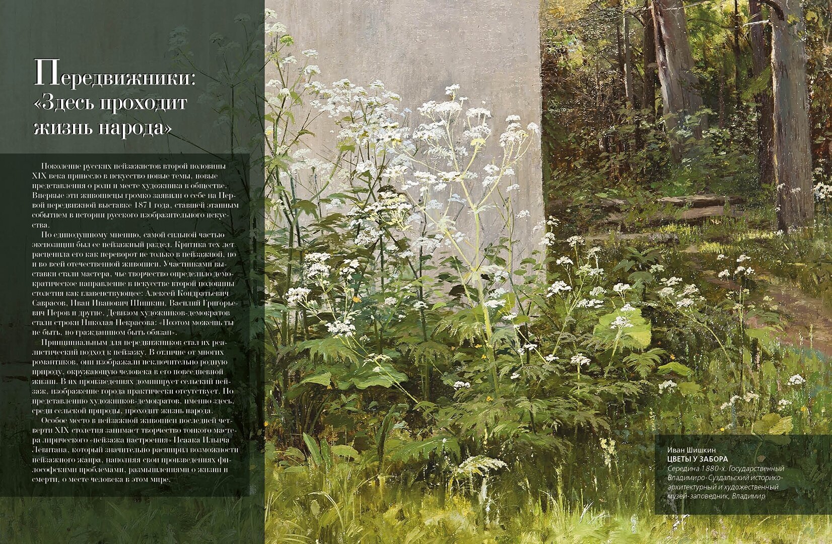 Хорошая книга с качественными иллюстрациями. Понравилось, что многие картины даны с крупными фрагментами - для издания среднего размера (примерно А4) это важно, дает возможность более детально рассмотреть картину. Альбом поделен на несколько разделов по хронологии и ведущему на тот момент направлению в живописи, к ним приведены небольшие общие статьи. К самим картинам есть тексты-пояснения. Конечно, в основном представлены самые известные художники, корифеи пейзажа (Щедрин, Шишкин, Айвазовский, Куинджи, Левитан...). Но есть и менее известные художники, а некоторые имена (Крачковский, Крыжицкий, Горбатов) стали для меня приятным открытием - захотелось и с этими живописцами познакомится получше.