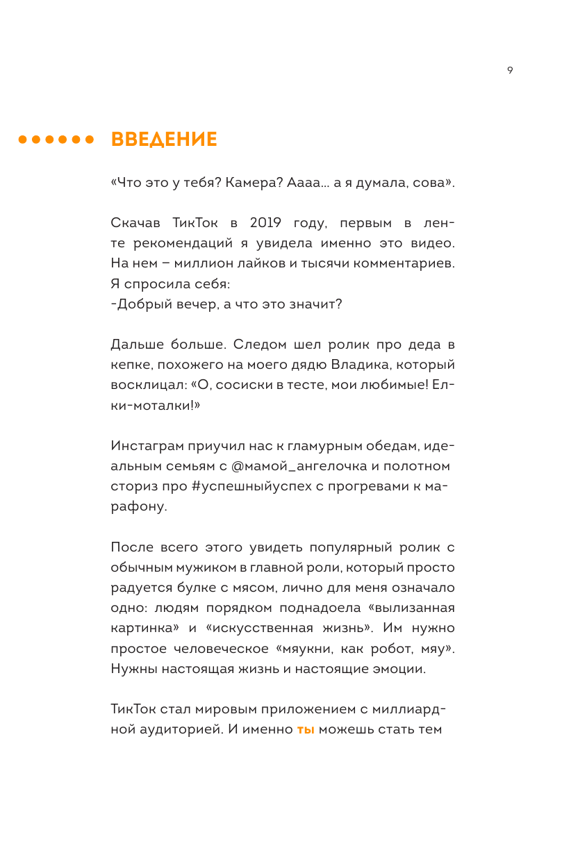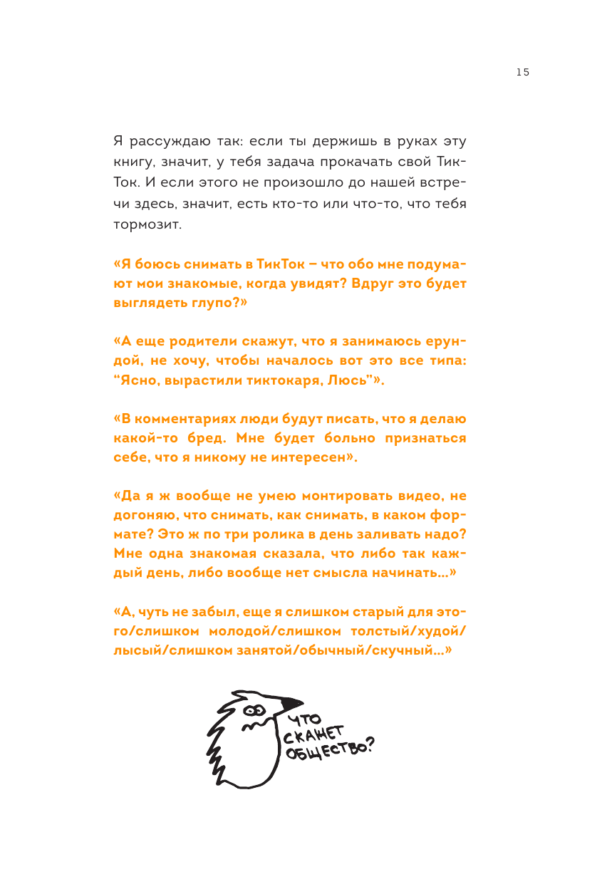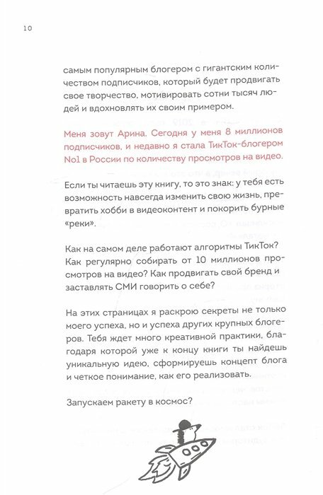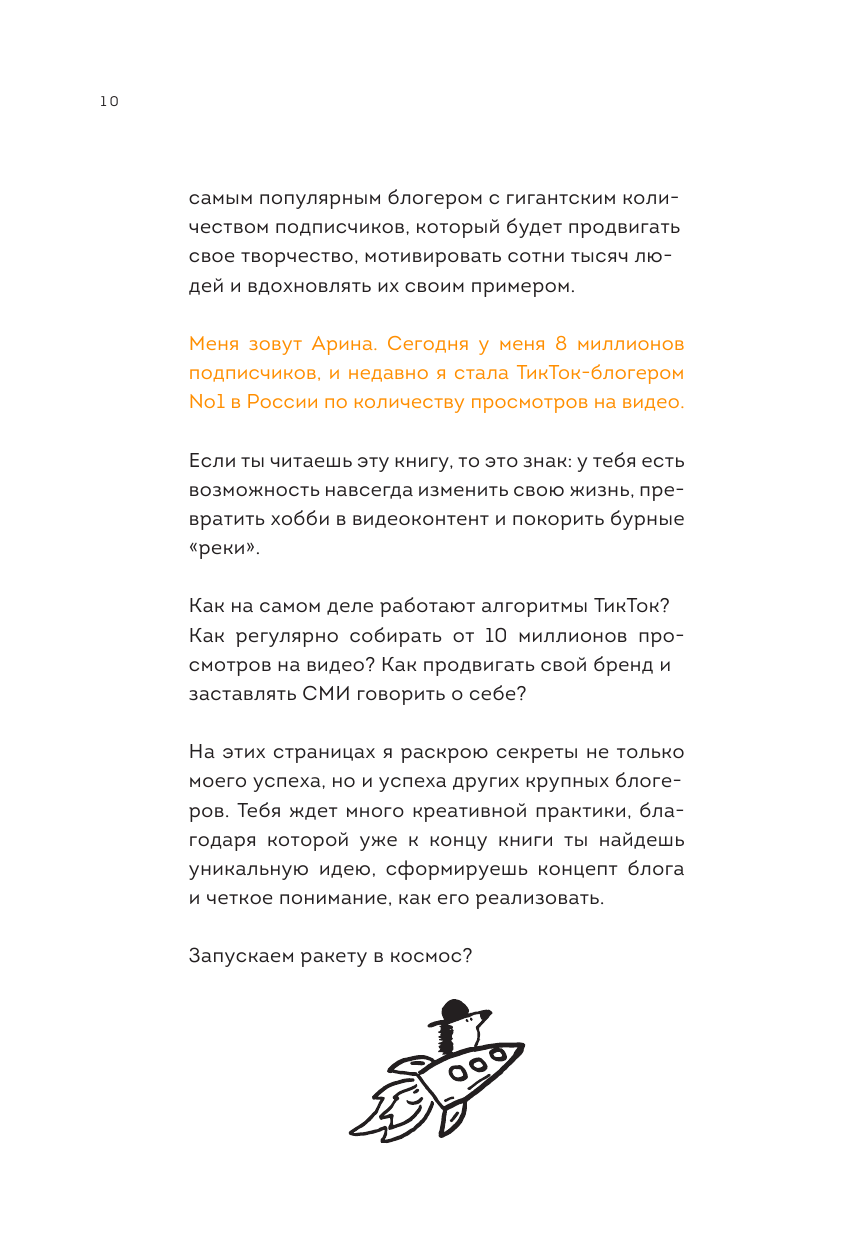 Внутри тебя ждут секреты не только моего успеха, но и успеха других крупных блогеров, много креативной практики и ключ к алгоритмам ТикТока. Начни читать, и обещаю, к концу у тебя родится УНИКАЛЬНАЯ идея, крутой концепт блога и чёткое понимание, как его реализовать.